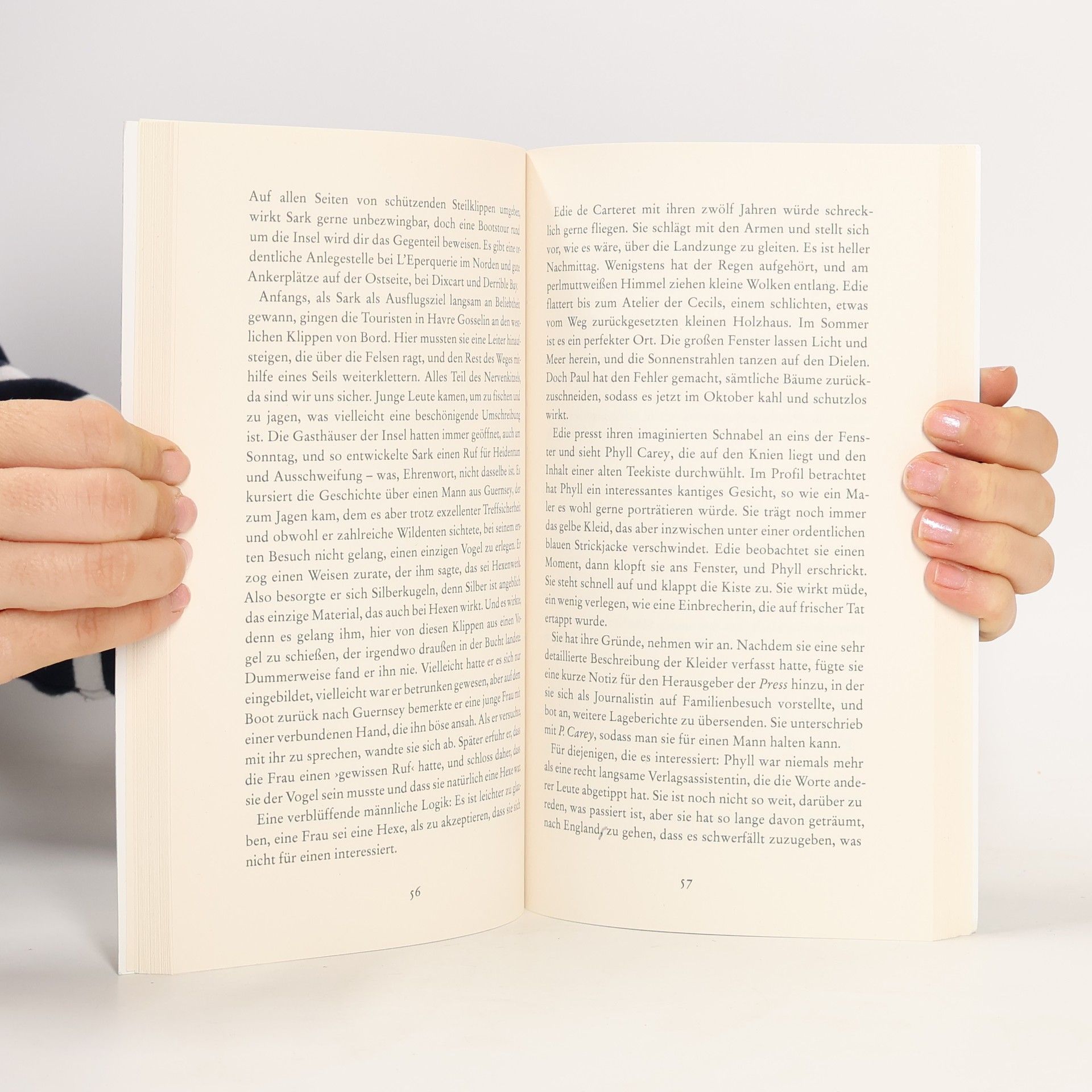 Nicht mehr als fünfhundert Seelen wohnen auf Sark, der wildesten und unberührtesten Insel im Ärmelkanal. Autos gibt es hier nicht, dafür das wohl kleinste Gefängnis der Welt. Sark eilt der Ruf voraus, dass hier nie auch nur irgendwas passiert. Doch als 1933 an der zerklüfteten Küste die ordentlich gefalteten Kleider eines Mannes und einer Frau gefunden werden, ohne dass irgendwer jemanden vermisst, steht Sark bald auf den Titel seiten der Zeitungen. Die zweiundzwanzigjährige Phyllis Carey hat gerade erst aus Gründen, über die sie nicht spricht, ihren Job bei einem Verlag in Southampton hingeschmissen und ist hierher zurückgekehrt. Warum nicht als Korrespondentin von dem Fall berichten?, schlägt ihre Mutter vor, und so macht sich Phyll auf die Suche nach der Wahrheit. Kann es Zufall sein, dass auch Everard Hyde genau jetzt wieder hergekommen ist, Phylls Freund aus Kindertagen, der zehn Jahre zuvor von einem Tag auf den anderen von der Insel verschwand? Erinnerungen an die mysteriösen Ereignisse von damals kehren zurück; verborgene Geheimnisse fordern ihren Tribut. Und dann wird eine Leiche aus den Fluten geborgen.