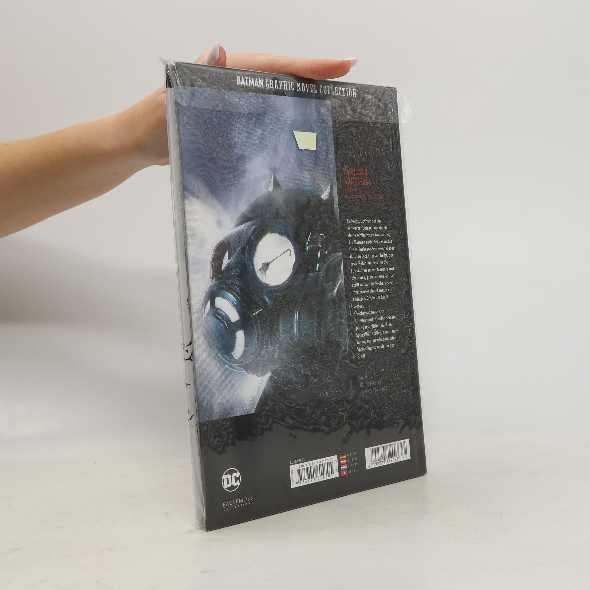 FAMILIENKONFLIKTEBAND 8: DER SCHWARZE SPIEGEL, TEIL 1Es heißt, Gotham sei ein schwarzer Spiegel, der all dir all deine schlimmsten Ängste zeigt. Für Batman bedeutet das nichts gutes, insbesondere wenn dieser Batman Dick Grayson heißt, der erste Robin, der jetzt in die Fußstapfen seines Mentors tritt. Ein neues grausameres Gotham stellt ihn auf die Probe, als ein ein mysteriöser Unbekannter ein tödliches Gift in der Stadt verteilt. Gleichzeitig muss sich Commissioner Gorden seinen ganz persönlichen dunklen Spiegelbild stellen, denn James Junior, sein psychopathischer Sprössling ist wieder in der Stadt. Inhalt: US-DETECTIVE COMICS #871–875
