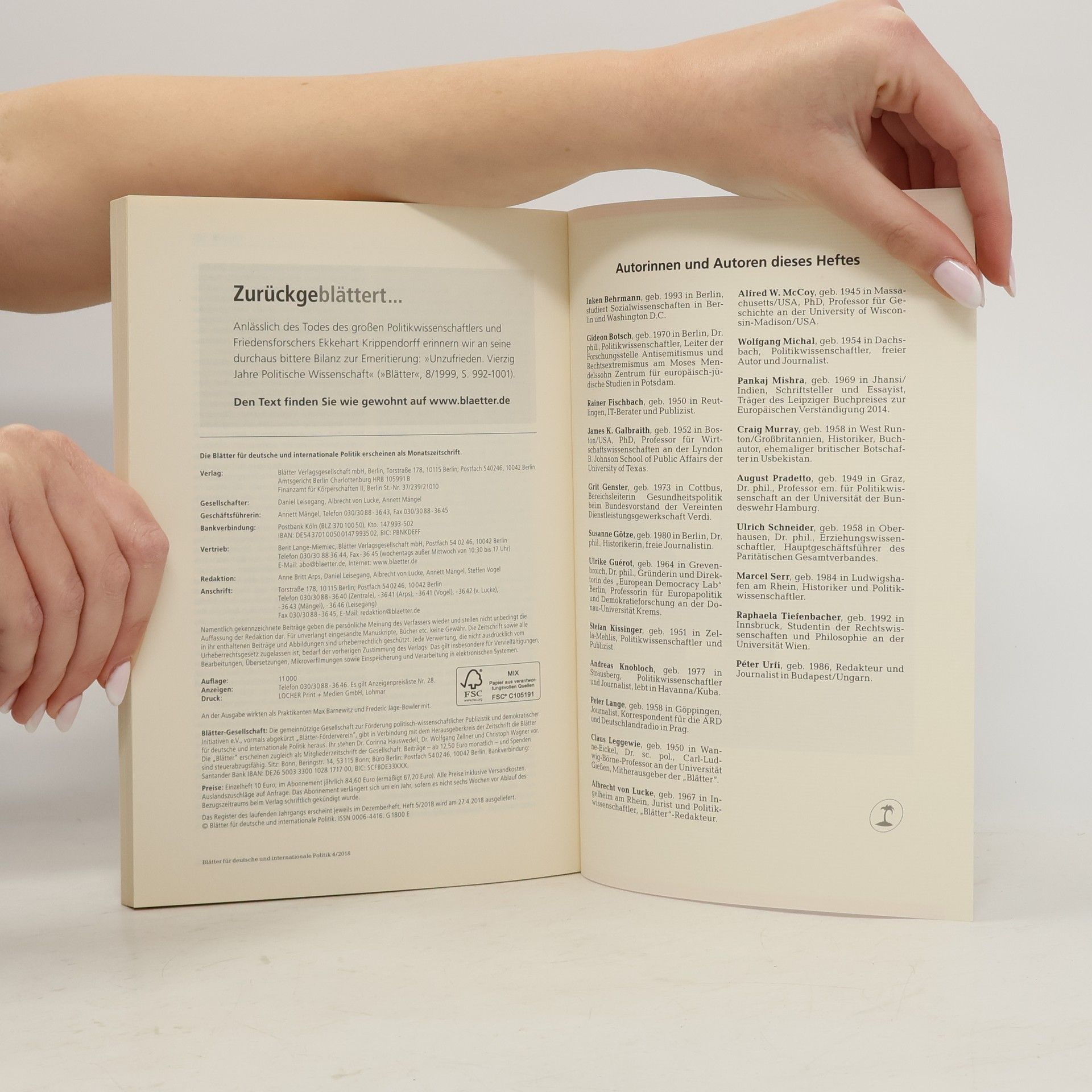 Blätter für deutsche und internationale Politik 4´18, Autorenkollektiv