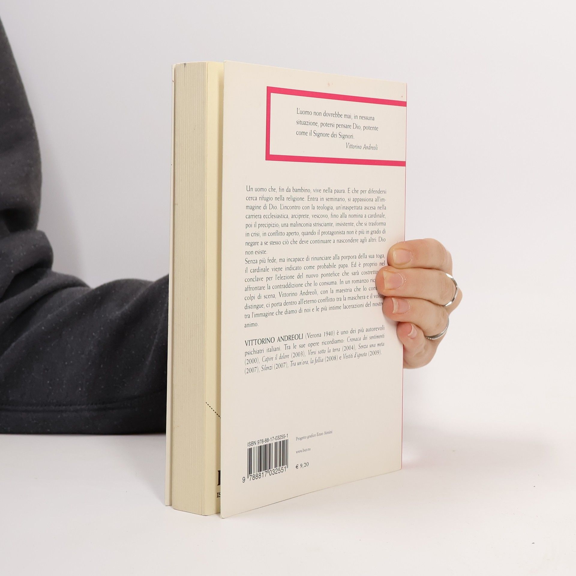 Un uomo che, fin da bambino, vive nella paura. E che per difendersi cerca rifugio nella religione. Entra in seminario, si appassiona all’immagine di Dio. L’incontro con la teologia, un’inaspettata ascesa nella carriera ecclesiastica, arciprete, vescovo, fino alla nomina a cardinale, poi il precipizio; una malinconia strisciante, insistente, che si trasforma in crisi, in conflitto aperto, quando il protagonista non è più in grado di negare a se stesso ciò che deve continuare a nascondere agli altri: Dio non esiste.Senza più fede, ma incapace di rinunciare alla porpora della sua toga, il cardinale viene indicato come probabile papa. Ed è proprio nel conclave per l’elezione del nuovo pontefice che sarà costretto ad affrontare la contraddizione che lo consuma. In un romanzo ricco di colpi di scena, Vittorino Andreoli, con la maestria che lo contraddistingue, ci porta dentro all’eterno conflitto tra la maschera e il volto, tra l’immagine che diamo di noi e le più intime lacerazioni del nostro animo.