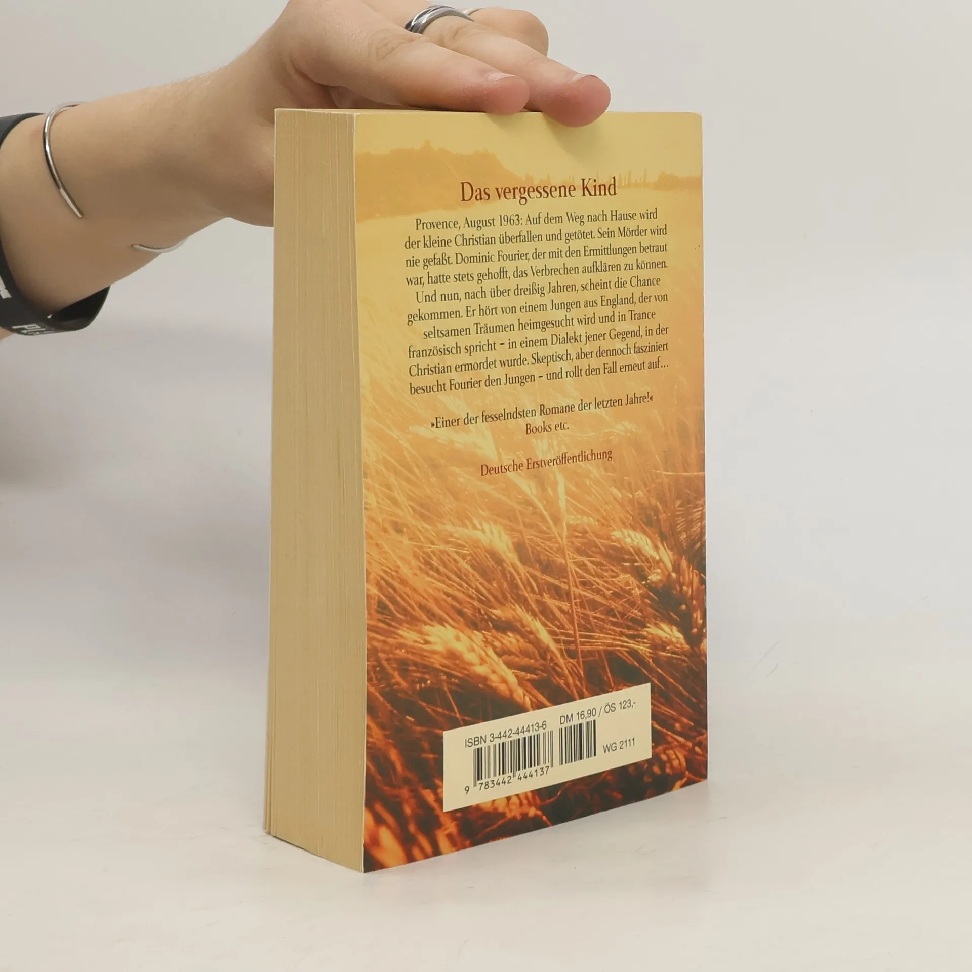 August 1963. Der kleine Christian fährt mit seinem Rad durch die Weizenfelder der Provence. Kurz darauf fällt er einem Mörder zum Opfer. Über dreißig Jahre später in Kalifornien: Der kleine Eyran verliert bei einem Verkehrsunfall seine Eltern und wird von seltsamen Träumen heimgesucht, in denen er einen Jungen und die wogenden Weizenfelder der Provence sieht; in Trance beginnt er sogar französisch zu sprechen. Dominic Fornier, der den ersten Fall bearbeitet hatte, nimmt die alte Spur wieder auf, und die führt ihn mitten in die Korridore der Macht. Ein Meisterwerk, das den psychologischen Spannungsroman mit dem Bereich des Mystischen verbindet.