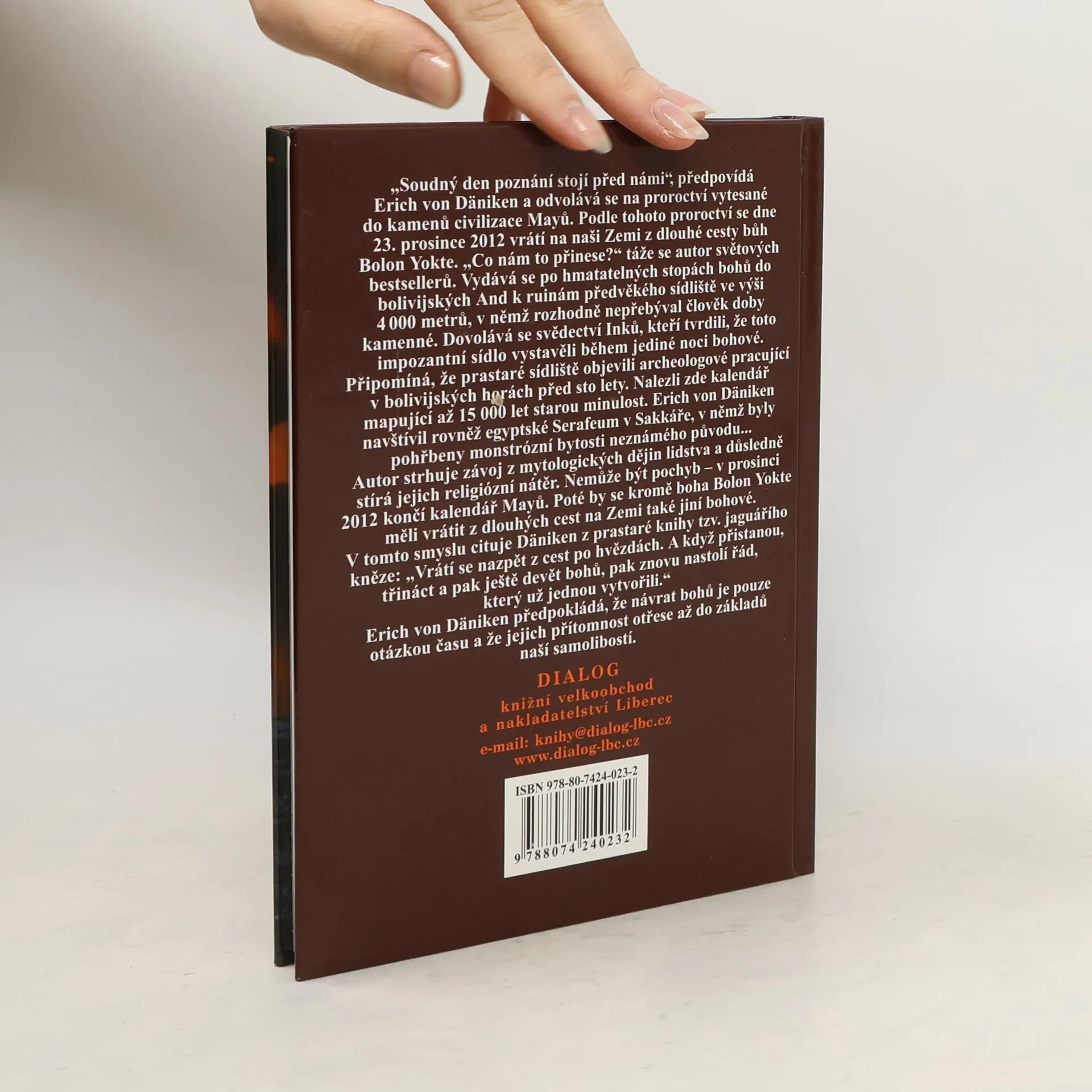 Soudný den poznání stojí před námi, prorokuje Erich von Däniken a odvolává se na proroctví vytesané do kamenů civilizací Mayů. Podle tohoto proroctví se dne 23. prosince 2012 vrátí na naši Zemi z dlouhé cesty bůh „Bolon Yokte“. Co nám to přinese? táže se autor světových bestsellerů. Vydává se po hmatatelných stopách bohů do bolivijských And k ruinám předvěkého sídliště ve výši 4 000 metrů, v němž rozhodně nepřebýval člověk doby kamenné. Dovolává se svědectví Inků, kteří tvrdili, že toto impozantní sídlo vystavěli během jediné noci bohové. Připomíná, že prastaré sídliště objevili archeologové pracující v bolivijských Andách před sto lety. Ti zde nalezli kalendář mapující až do 15 000 let starou minulost. EvD navštívil rovněž egyptské Serafeum pod Sakarou, v němž byly pohřbeny monstrózní bytosti neznámého původu... Autor strhuje závoj z mytologických dějin lidstva a důsledně stírá jejich religiózní nátěr. Nemůže být pochyb – v prosinci 2012 končí kalandář Mayů. Poté by se kromě boha „Bolon Yokte“ měli vrátit z dlouhých cest na Zemi také jiní bohové. V tomto smyslu cituje EvD z prastaré knihy tzv. Jaguářího kněze: Vrátí se nazpět z cest po hvězdách. A když přistanou, třináct a pak ještě devět bohů, pak znovu nastolí řád, který už jednou vytvořili. EvD předpokládá, že návrat bohů je pouze otázkou času a že jejich přítomnost otřese až do základů naší samolibostí.