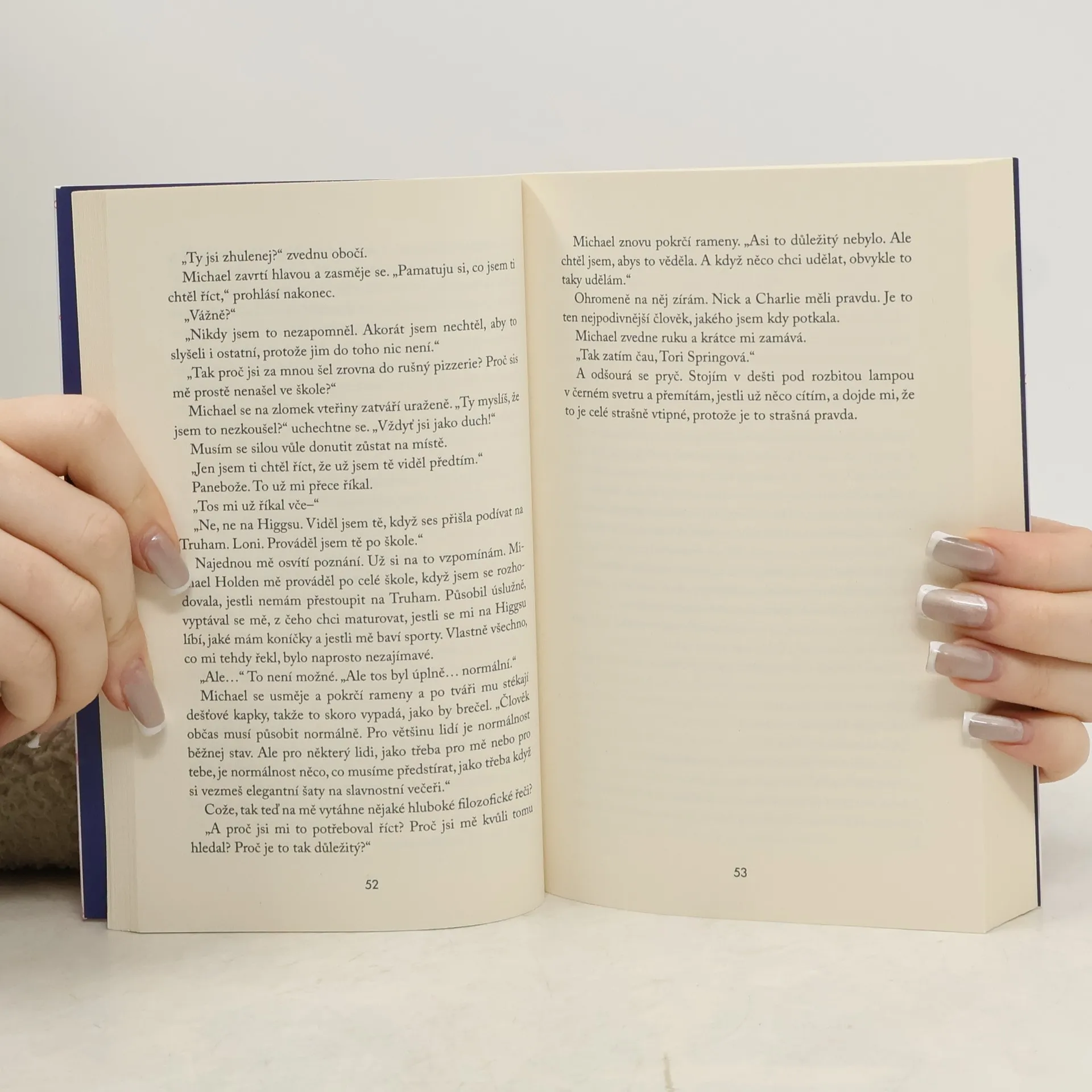 Tori Springová by byla nejradši, kdyby ji všichni nechali na pokoji. Jenže svět, do kterého se narodila, je hlasitý a extrovertní: vypadá to, že každý po ní chce, aby se změnila a popřela sama sebe. Až na Michaela Holdena. Tenhle zvláštní kluk ji snad jako jediný bere takovou, jaká je. Když jejich střední školu šokuje anonymní skupina Solitaire, pokusí se Tori a Michael odhalit její tajemství. A možná během pátrání zjistí, že ve společnosti plné předsudků může jedno přátelství změnit úplně všechno… Debutový román autorky Srdcerváčů, ve kterém se poprvé objevili Nick a Charlie.