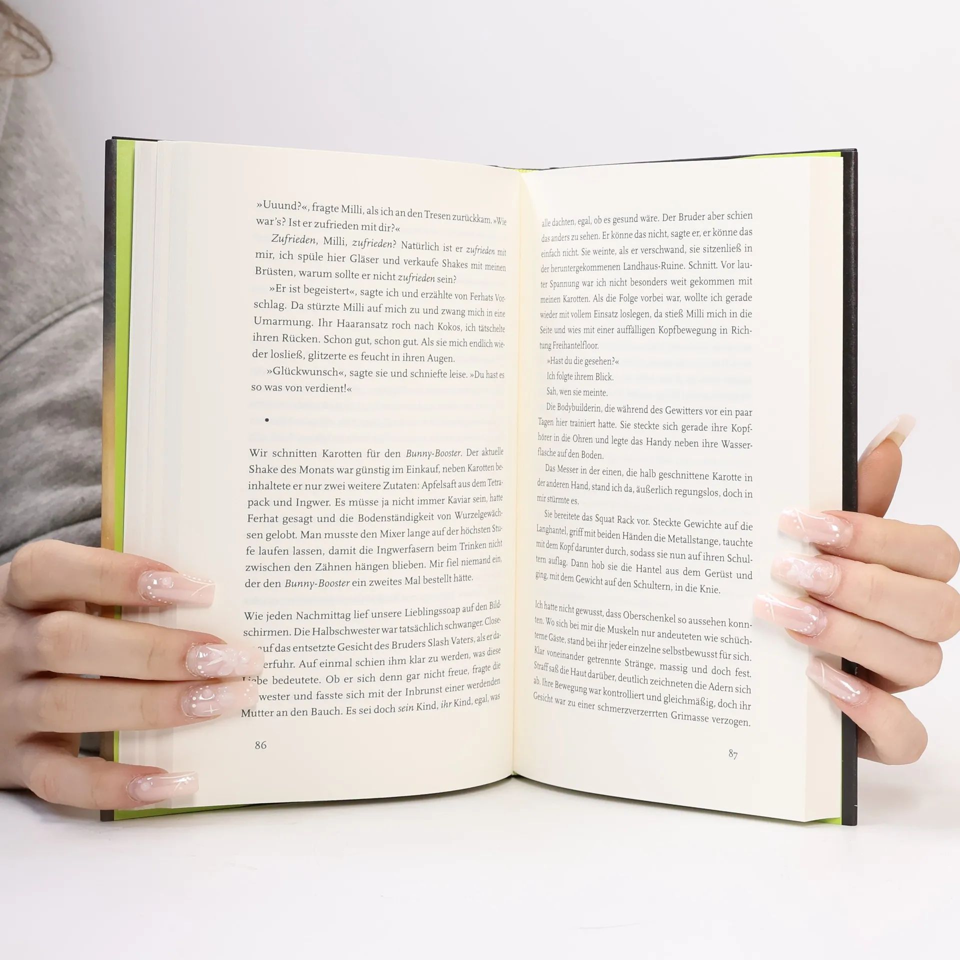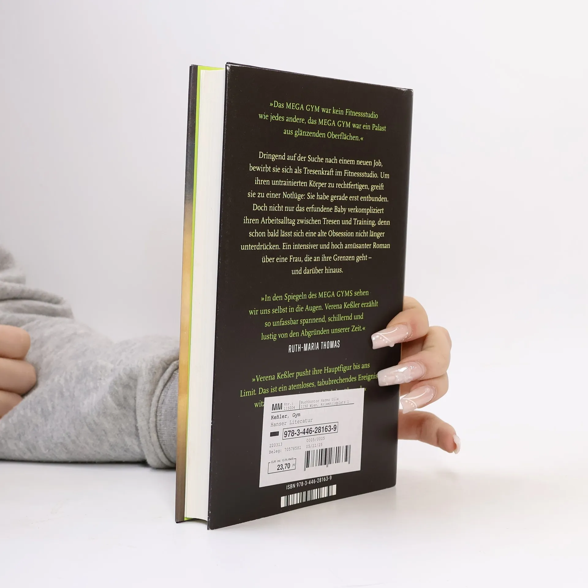 Glänzende Spiegel, definierte Körper, legere Flirts am Tresen. Die Protagonistin in Verena Keßlers knalligem Roman liebt ihren neuen Job im MEGA GYM. Es gibt keinen Leistungsdruck, keine Überstunden, dafür liebenswerte Kolleginnen und einen Chef, der stolzer Feminist ist. Alles perfekt, wäre da nicht die klitzekleine Lüge, zu der sie sich im Einstellungsgespräch hat hinreißen lassen. Sie habe kürzlich erst entbunden, hat sie behauptet, und jetzt wollen alle Babyfotos sehen und fragen ständig nach „dem Kleinen“. Doch erst, als Bodybuilderin Vick auftaucht, wird klar, dass ein erfundenes Kind nicht das einzige Geheimnis dieser verschwiegenen Erzählerin ist. Eine Geschichte über Obsession, Ehrgeiz und die selbstzerstörerische Kehrseite schöner Oberflächen.