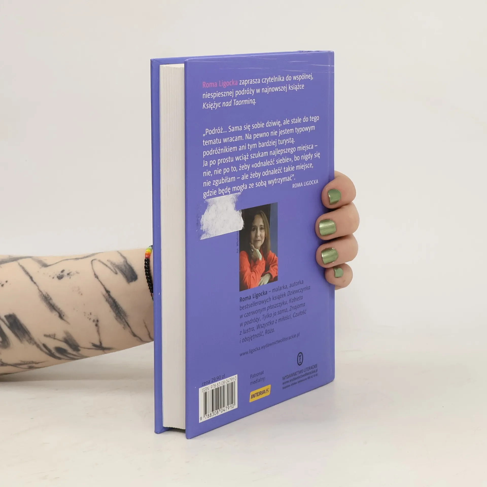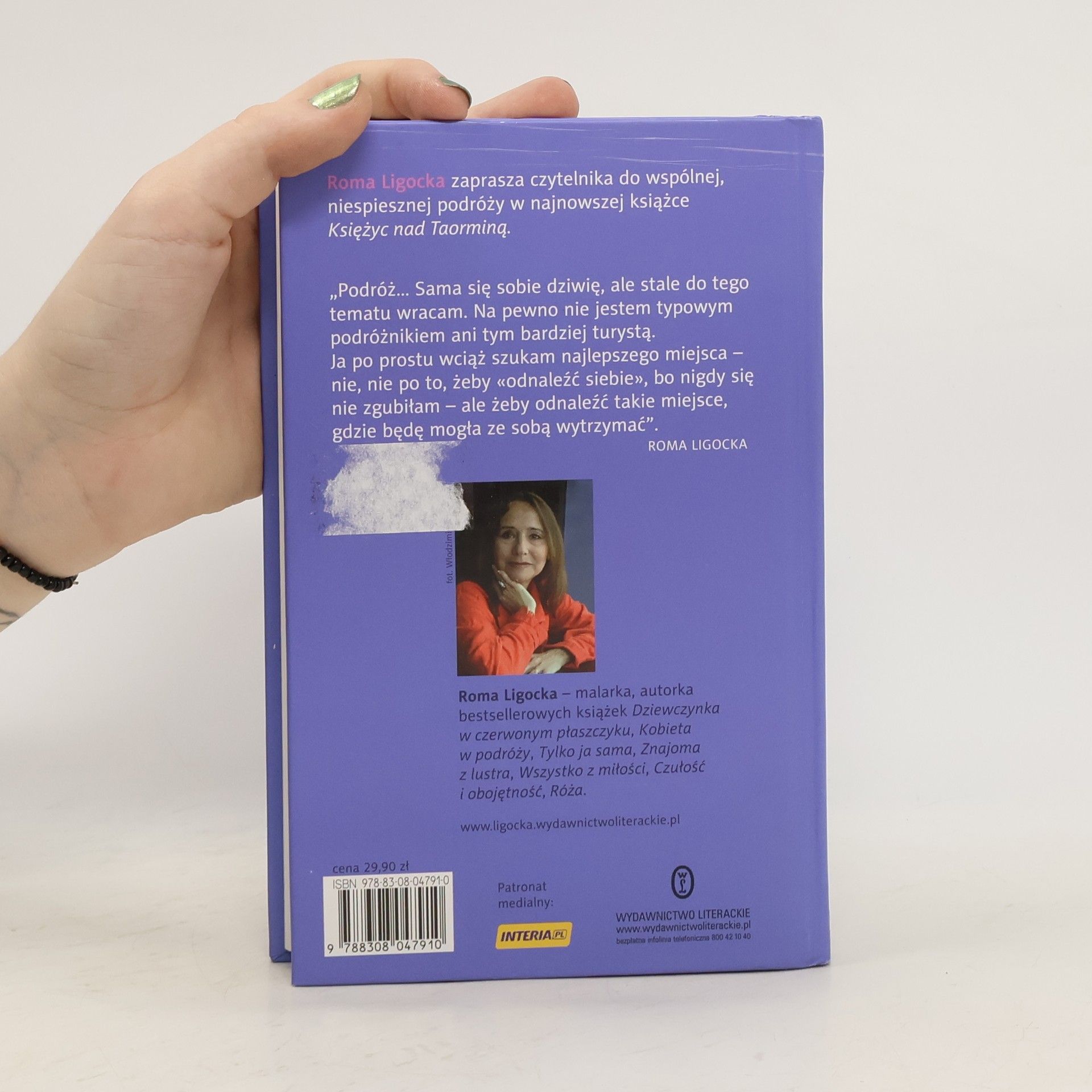 Istotnym elementem tej książki jest podróż. Sama się sobie dziwię, ale stale do tego temat wracam. Na pewno nie jestem typowym podróżnikiem ani tym bardziej turystą – ja po prostu wciąż szukam najlepszego miejsca – nie, nie po to żeby "odnaleźć siebie", bo nigdy się nie zgubiłam – ale żeby odnaleźć takie miejsce, gdzie będę mogła ze sobą wytrzymać.Roma Ligocka