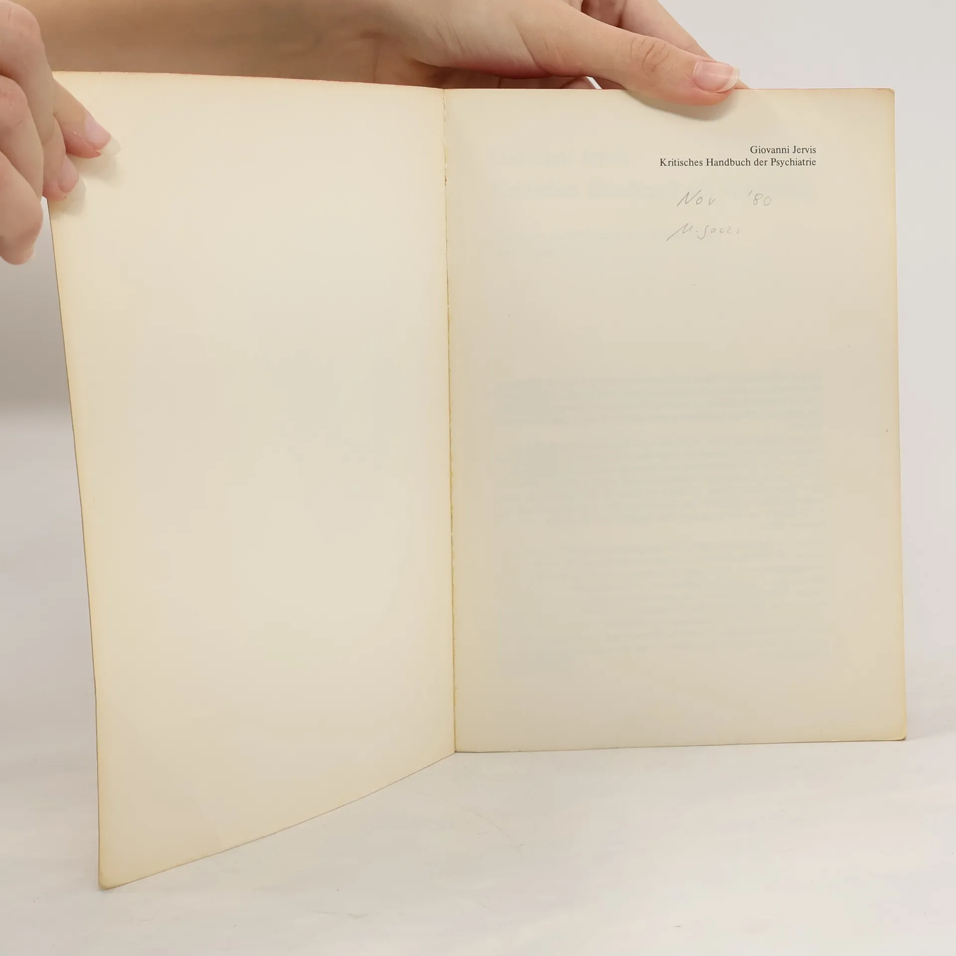 Kritisches Handbuch der Psychiatrie, Giovanni Jervis