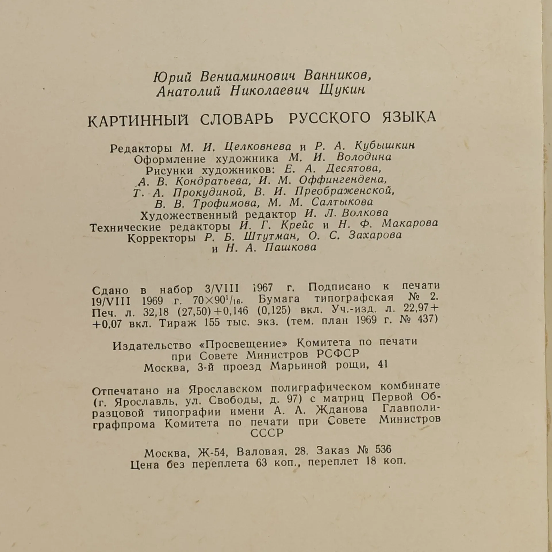 Картинный словарь русского языка, Юрий Вениаминович Ванников, Анатолий Николаевич Щукин