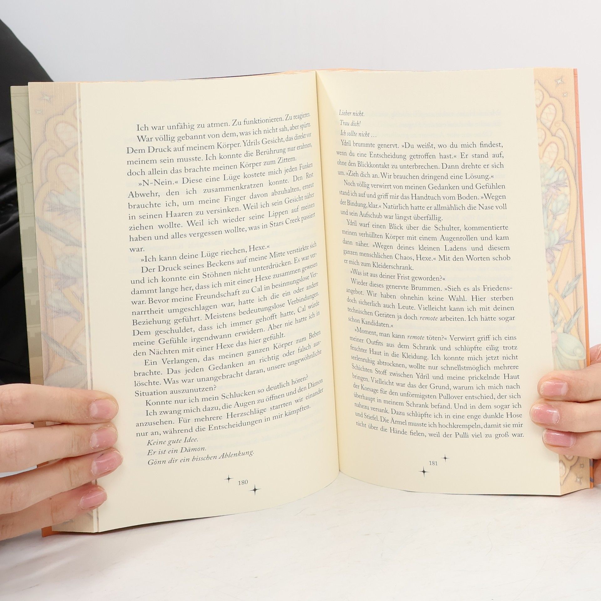 Ein verzauberter Buchladen, eine Hexe mit ... emotional instabiler Magie und ein Dämon, der ... versehentlich gebunden wurde Sei vorsichtig mit deinen Wünschen, sie könnten in Erfüllung gehen! Deandra „Dee“ Moth gilt dank ihrer magischen Instabilität als wandelnde Katastrophe. Kein Wunder also, dass eine Räumungsklage für ihren frisch übernommenen Buchladen in Ecco Falls eintrifft. Ihr bleiben genau vier Wochen, um zu beweisen, dass sie mehr kann, als Chaos verbreiten. Sie braucht also dringend einen Plan. Denn Dee hat die Nase voll davon, immer wieder zu versagen. Im Hexen-Netz stößt sie auf einen für Anfänger geeigneten Beschwörungszauber. Der Plan? Genial. Die Ausführung? Nun ja… Denn statt eines strahlenden Schutzgeists steht plötzlich der Tod persönlich vor ihr. Groß, düster – und überraschend charmant. Mit der Räumungsklage im Nacken und einem viel zu attraktiven Dämon an ihrer Seite muss Dee schlagartig zwei Probleme lösen: Wie wird sie diesen Dämon wieder los? Und wie rettet sie dabei ihren geliebten Laden? #SmalltownFantasyRomcom #GrumpyxSunshine #ForcedProximity #FoundFamil #WhoDidThisToYou #FakeDating Ausstattungsmerkmale: • Veredelte Klappenbroschur • Mit farbigen Illustrationen in Vor- und Nachsatz • Farbschnitt in der ersten Auflage Dieses Buch gibt es in zwei Varianten: Mit und ohne Farbschnitt. Leider können wir keinen Farbschnitt garantieren.