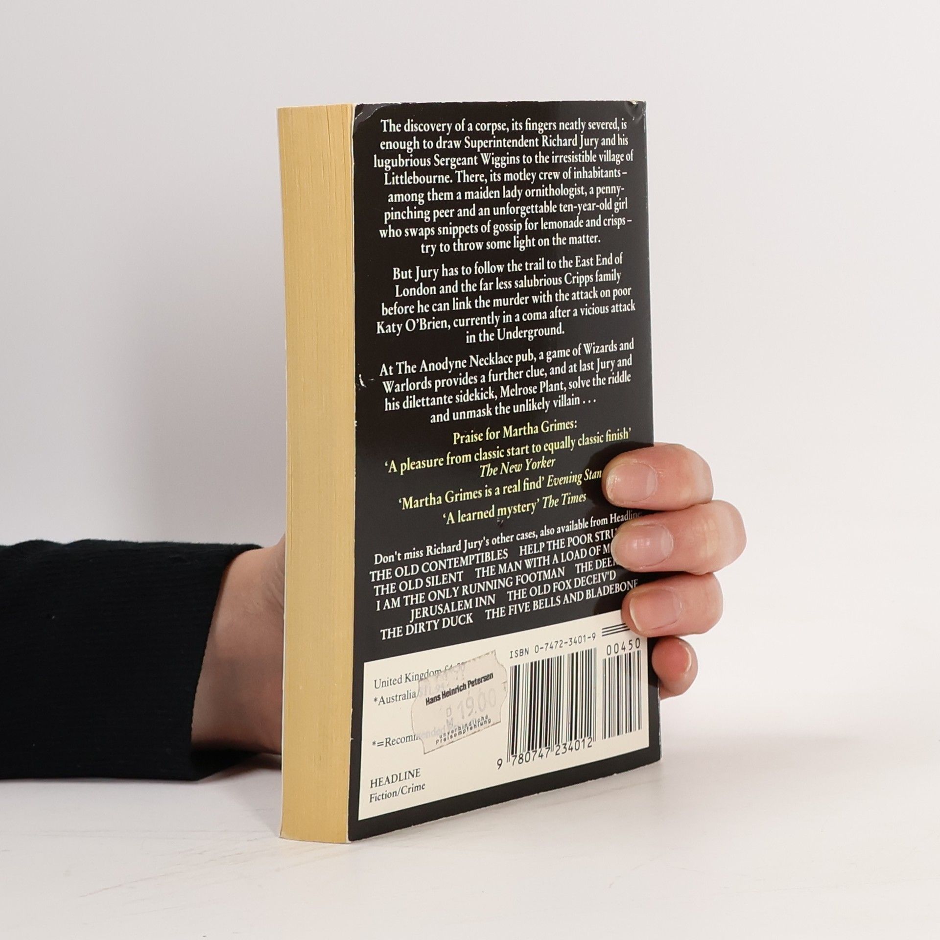 A severed finger found at the scene of a baffling murder in the village of Littlebourne leads local constables on what seems like a wild goose chase. But Richard Jury prefers to take the less traveled route to a slightly disreputable pub, where drinks all around loosen tongues and provide clues galore.