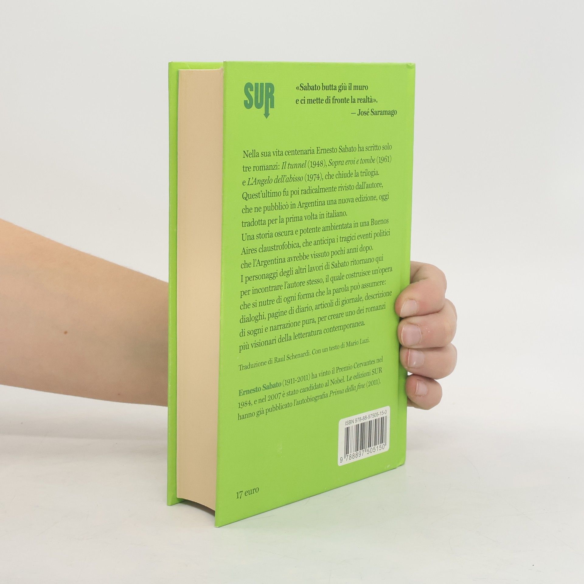 Nella sua vita centenaria Ernesto Sabato ha scritto solo tre romanzi: Il tunnel (1948), Sopra eroi e tombe (1961) e L’Angelo dell’abisso (1974), che chiude la trilogia. Quest’ultimo fu poi radicalmente rivisto dall’autore, che ne pubblicò in Argentina un’edizione, oggi tradotta per la prima volta in italiano. Una storia oscura e potente ambientata in una Buenos Aires claustrofobica, che anticipa in maniera profetica i tragici eventi politici che l’Argentina avrebbe vissuto pochi anni dopo. I personaggi degli altri lavori di Sabato ritornano qui per incontrare l’autore stesso, il quale costruisce un’opera che si nutre di ogni forma che la parola può assumere: dialoghi, pagine di diario, articoli di giornale, descrizione di sogni e narrazione pura, per creare uno dei romanzi più visionari della letteratura contemporanea. Con un testo di Mario Luzi.