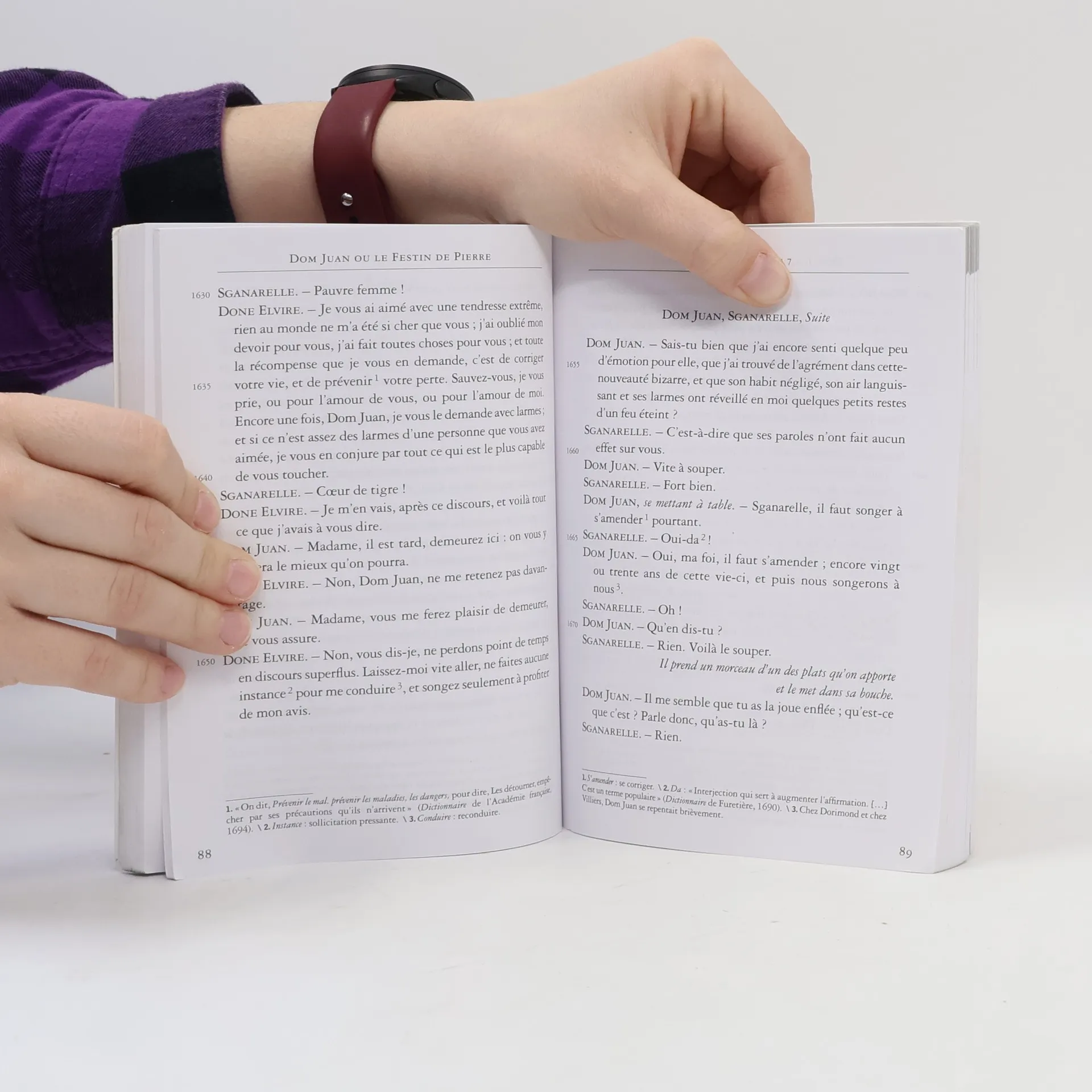 Séducteur invétéré, Dom Juan, récemment marié à Elvire, fuit cette dernière en compagnie de son valet, le fidèle Sganarelle. Mais, au milieu de ses conquêtes libertines, reparaît le spectre du Commandeur que Dom Juan a tué au cours d’un duel. Dans cette pièce, Molière révèle, au-delà des masques, le destin tragique d’un homme qui ne vit que dans l’instant et qui éprouve la difficulté baroque de n’être qu’un.