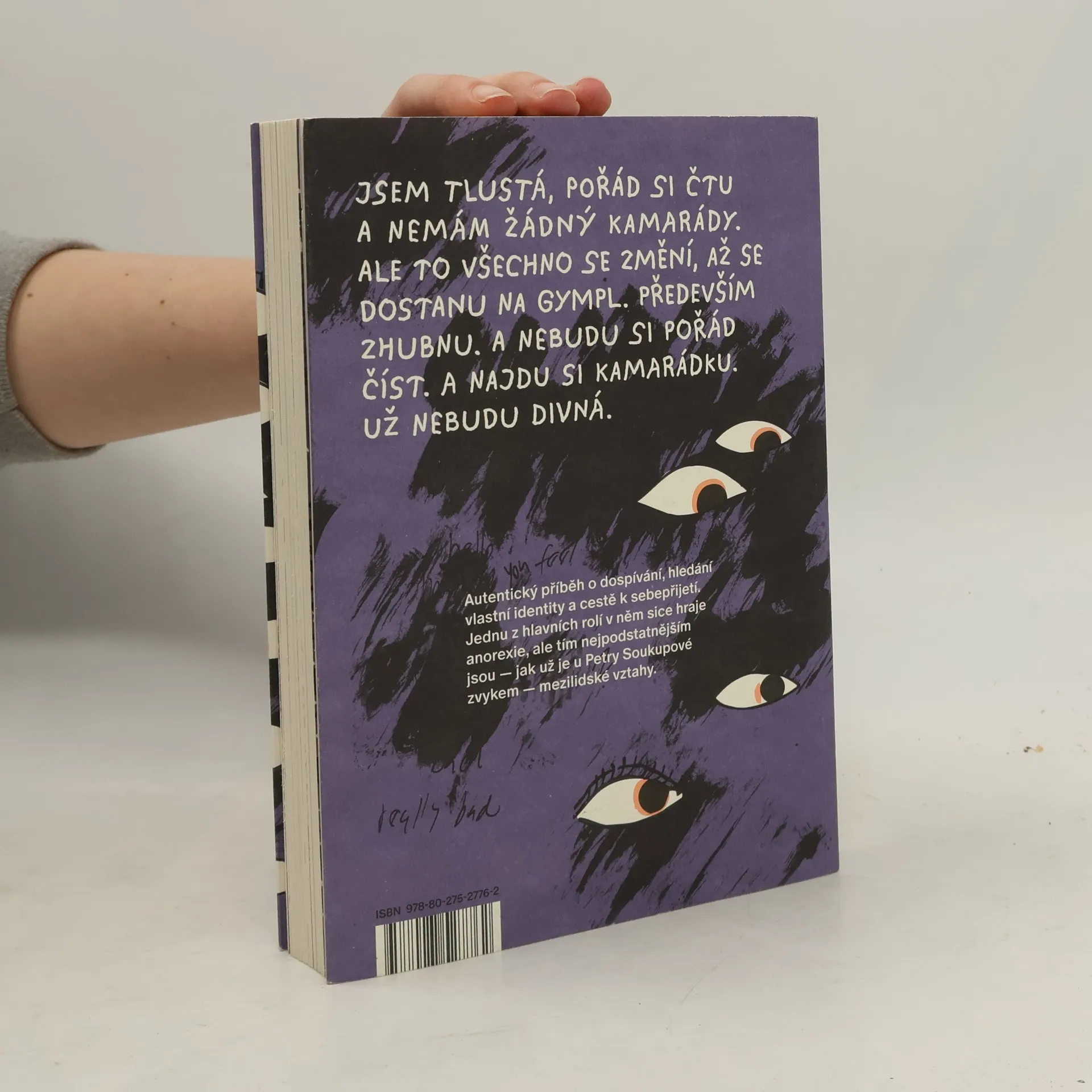 Skoro patnáctiletá Katka tráví většinu času sama a nejradši si čte. A taky ráda jí. Spolužáci ji mají za podivínku. Katka ale ví, že na gymplu bude všechno jinak, a hned po přijímačkách si dá předsevzetí: zhubnout. Zpočátku jde jen o snahu upravit životní styl, postupně se ale ukáže, že cesta k vysněnému „novému já“ není tak jednoduchá, jak si představovala. Touha po změně se Katce začne vymykat z rukou. Na gymplu se opravdu všechno změní — jen trochu jinak, než čekala. Autentický příběh o dospívání, hledání vlastní identity a cestě k sebepřijetí. Jednu z hlavních rolí v něm sice hraje anorexie, ale tím nejpodstatnějším jsou — jak už je u Petry Soukupové zvykem — mezilidské vztahy.