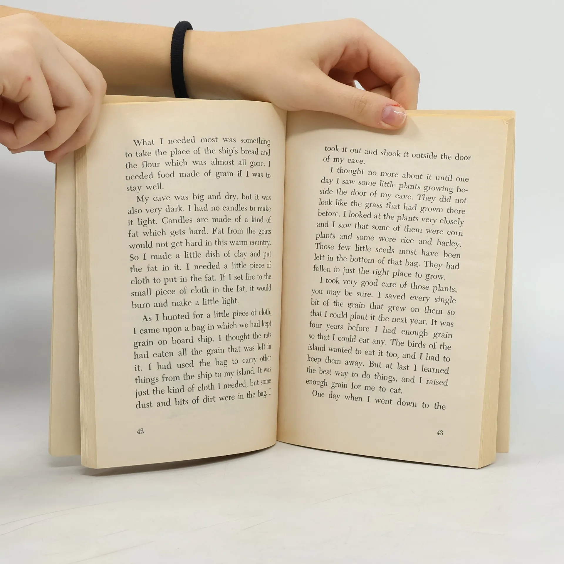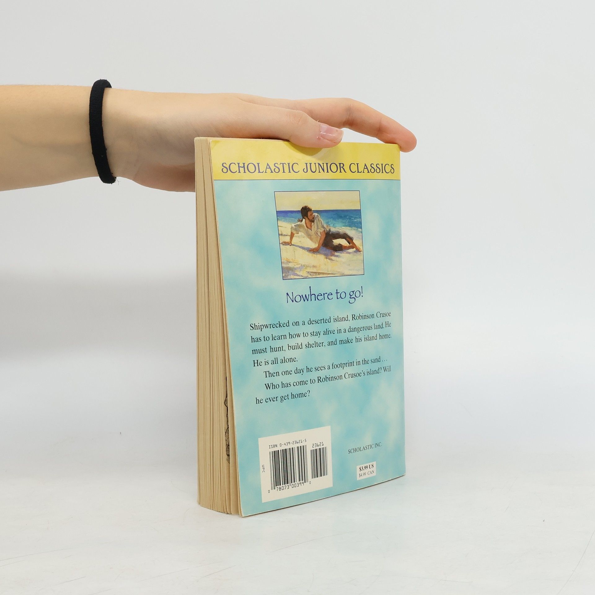 Shipwrecked Robinson Crusoe is alone on a desert island. Are there wild animals in the forest? Cannibals?If he wants to stay alive, Robinson Crusoe must start to do things he never thought of doing before: build a house, weave baskets,, tame goals, raise grain, sew anima-l skin clothes.He has no one to help him, no one to talk to. He has to decide for himself what to do. Then he has to do it.How does Robinson Crusoe stay alive and safe on his island?