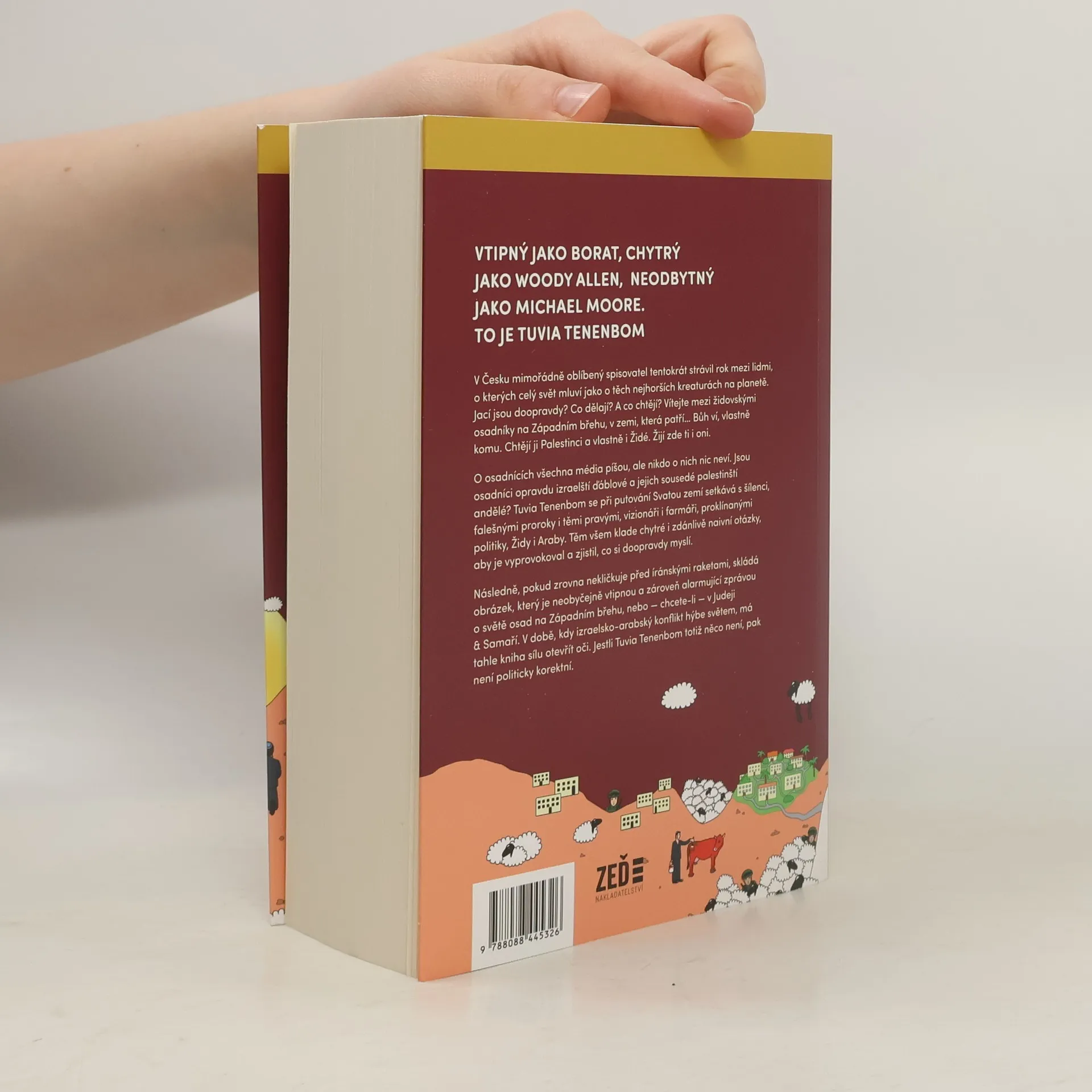 Nová kniha v Česku mimořádně oblíbeného spisovatele a rovnou ve světové premiéře. Tuvia Tenenbom dokáže odkrývat nešvary dnešního světa jako málokdo, trefně, tvrdě, ale s vtipem a nadhledem. Tentokrát strávil rok mezi lidmi, o kterých celý svět mluví jako o těch nejhorších kreaturách na planetě, kteří páchají to nejhorší zlo. Jací jsou doopravdy? Co dělají? A co chtějí? Vítejte mezi židovskými osadníky na Západním břehu, v zemi, která patří… Bůh ví, vlastně komu. Chtějí ji Palestinci a vlastně i Židé. Žijí zde ti i oni. O osadnících všechna média píšou, ale nikdo mezi nimi nestrávil takovou dobu jako Tenenbom. Jsou osadníci opravdu izraelští ďáblové a jejich sousedé palestinští andělé? Setkává se s šílenci, falešnými proroky i těmi pravými, vizionáři i farmáři, Židy i Araby. Těm všem klade chytré i zdánlivě naivní otázky, aby je vyprovokoval – což se mu často daří – a zjistil, co si doopravdy myslí. Následně, pokud zrovna nesleduje íránské rakety na obloze, skládá obrázek, ktery je neobyčejně vtipnou a zároveň alarmující zprávou o Izraeli a Palestině, o světě osad na Západním břehu, nebo – chcete-li – v Judeji & Samaří. V době, kdy izraelsko-arabský konflikt hýbe světem Tuvia Tenenbom přichází s knihou, která má sílu otevřít oči. Za vším jeho vtipem jsou totiž často překvapující i kruté pravdy. Jestli Tuvia Tenenbom totiž něco není, pak není politicky korektní.