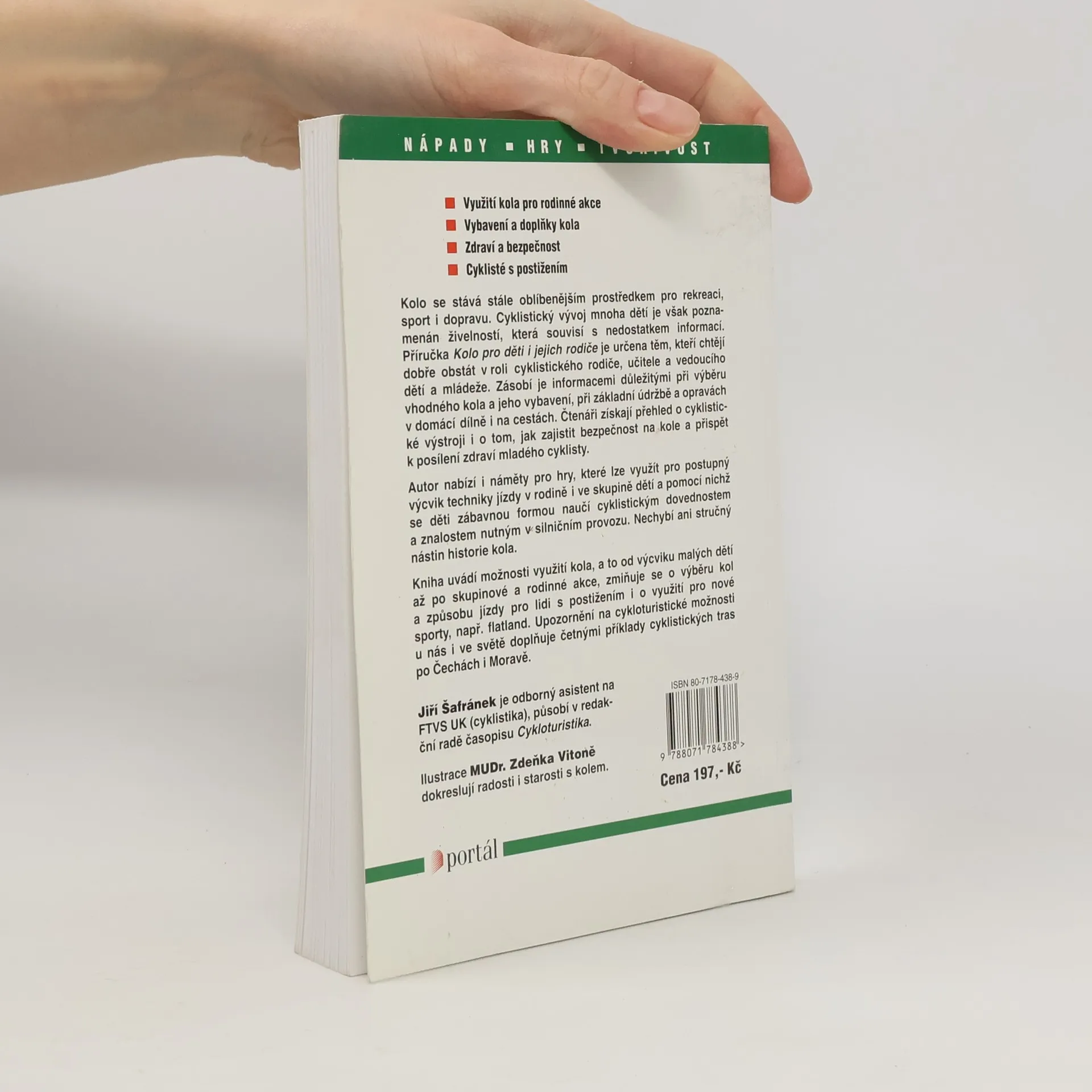 Tato příručka je určena těm, kteří chtějí dobře obstát v roli cyklistického rodiče. Zásobí je informacemi důležitými při výběru vhodného kola a jeho vybavení, o základní údržbě a opravách doma i na cestě. Získáte přehled o cyklistické výstroji i bezpečnosti. Četné příklady cyklistických tras po Čechách.