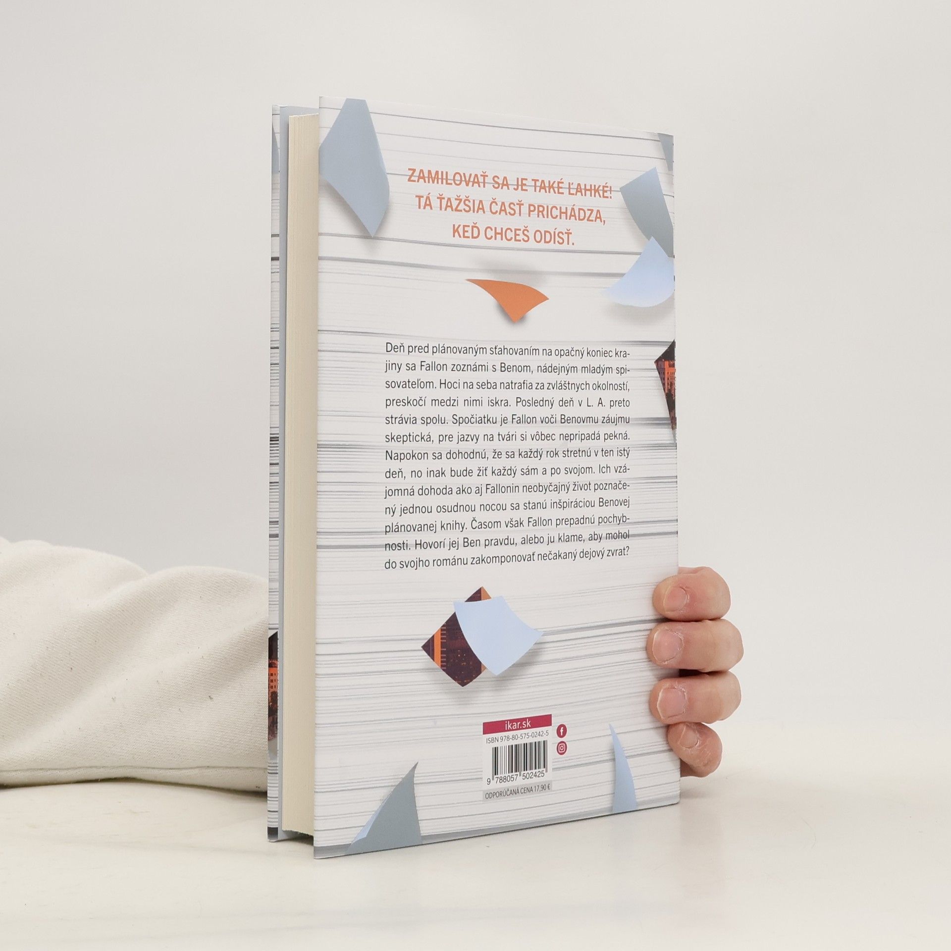 Zamilovať sa je také ľahké! Tá ťažšia časť prichádza, keď chceš odísť. Deň pred plánovaným sťahovaním na opačný koniec krajiny sa Fallon zoznámi s Benom, nádejným mladým spisovateľom. Hoci na seba natrafia za zvláštnych okolností, preskočí medzi nimi iskra. Posledný deň v L. A. preto strávia spolu. Spočiatku je Fallon voči Benovmu záujmu skeptická, pre jazvy na tvári si vôbec nepripadá pekná. Napokon sa dohodnú, že sa každý rok stretnú v ten istý deň, no inak bude žiť každý sám a po svojom. Ich vzájomná dohoda ako aj Fallonin neobyčajný život poznačený jednou osudnou nocou sa stanú inšpiráciou Benovej plánovanej knihy. Časom však Fallon prepadnú pochybnosti. Hovorí jej Ben pravdu, alebo ju klame, aby mohol do svojho románu zakomponovať nečakaný dejový zvrat?