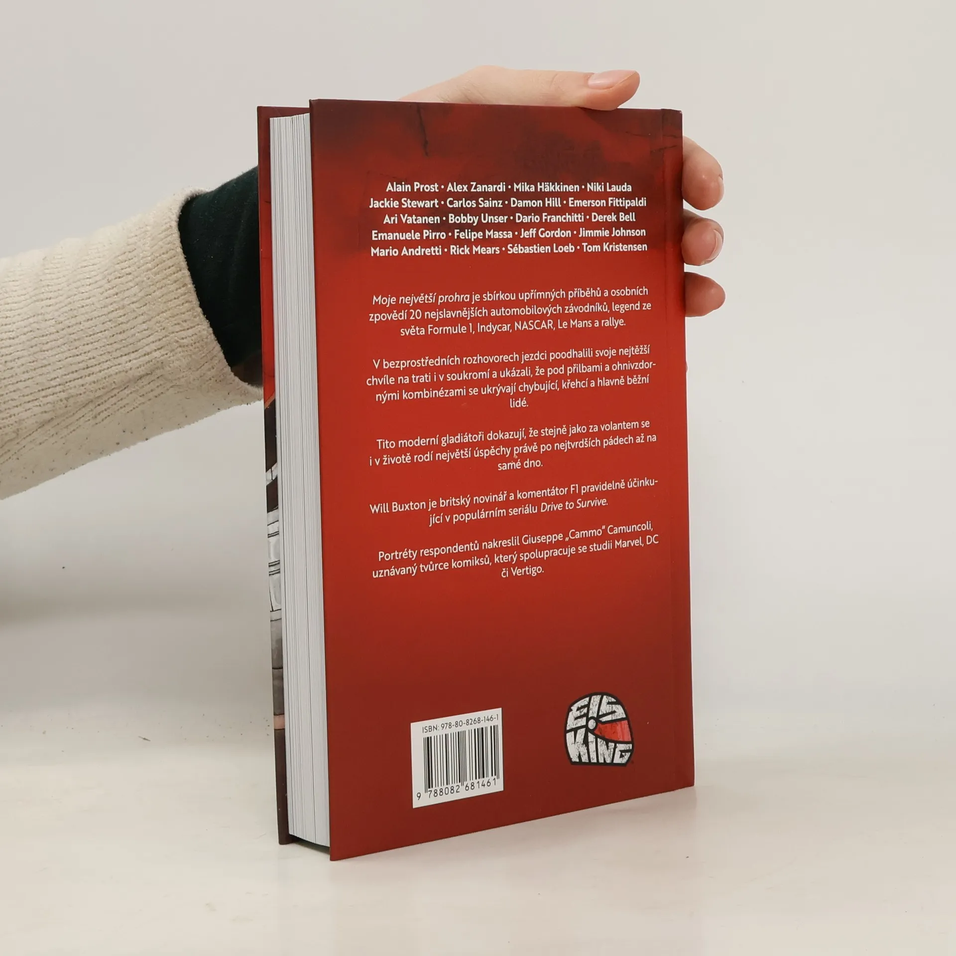 Moje největší prohra je sbírkou upřímných příběhů a osobních zpovědí 20 nejslavnějších automobilových závodníků, legend ze světa Formule 1, Indycar, NASCAR, Le Mans a rallye. V bezprostředních rozhovorech jezdci poodhalili svoje nejtěžší chvíle na trati i v soukromí a ukázali, žepod přilbami a ohnivzdornými kombinézami se ukrývají chybující, křehcí a hlavně běžní lidé. Tito moderní gladiátoři dokazují, že stejně jako za volantem se i v životě rodí největší úspěchy právě po nejtvrdších pádech až na samé dno. Will Buxton je britský novinář a komentátor F1 pravidelně účinkující v populárním seriálu Drive to Survive. Portréty respondentů nakreslil Giuseppe „Cammo“ Camuncoli, uznávaný tvůrce komiksů, který spolupracuje se studii Marvel, DC či Vertigo.