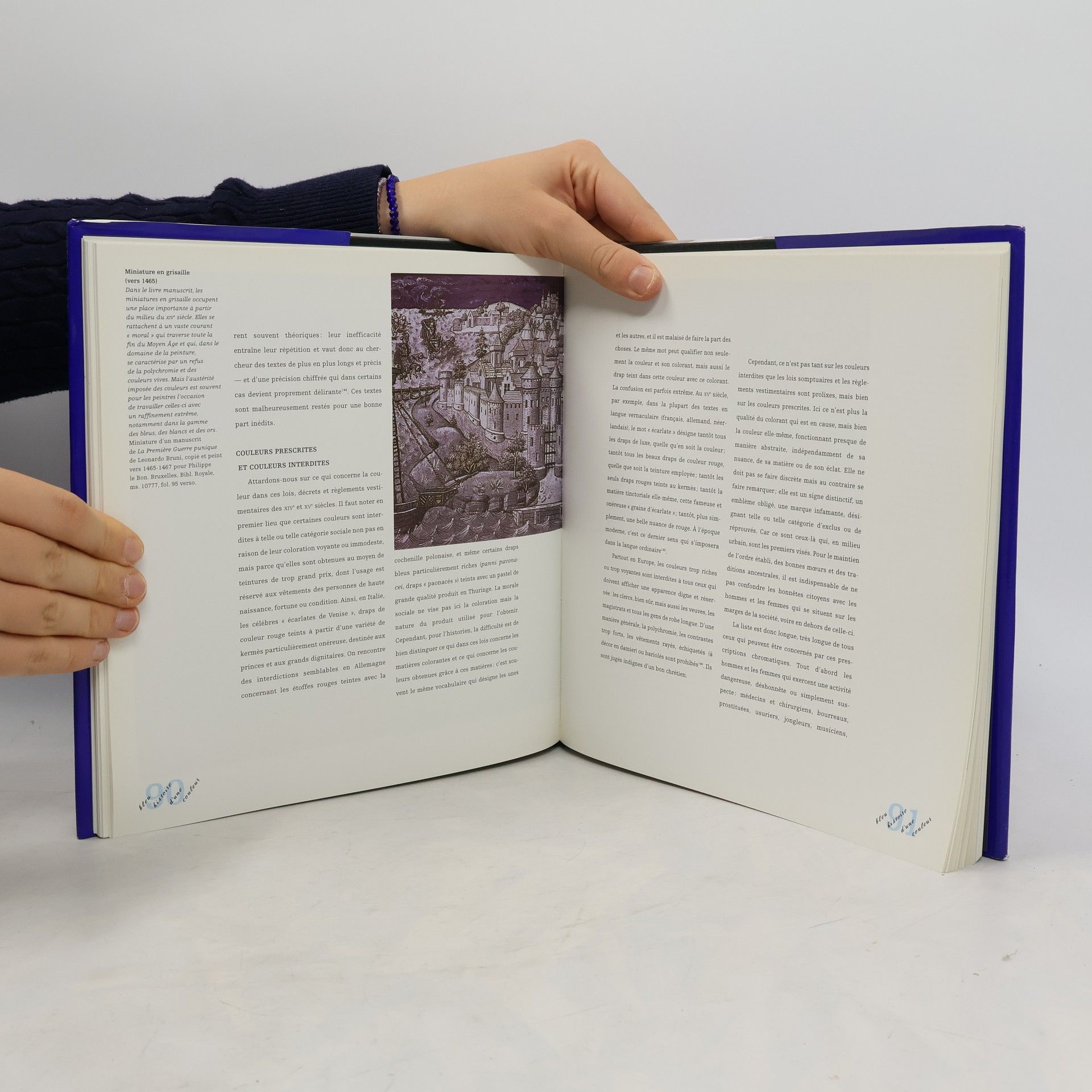 <b>Bleu</b> L'histoire de la couleur bleue dans les sociétés européennes est celle d'un complet renversement : pour les Grecs et les Romains, cette couleur compte peu ; elle est même désagréable à l'œil. Or aujourd'hui, partout en Europe, le bleu est de très loin la couleur préférée (devant le vert et le rouge). L'ouvrage de Michel Pastoureau raconte l'histoire de ce renversement, en insistant sur les pratiques sociales de la couleur (étoffes et vêtements, vie quotidienne, symboles) et sur sa place dans la création littéraire et artistique, depuis les sociétés antiques et médiévales jusqu'à l'époque moderne. Il analyse également le triomphe du bleu à l'époque contemporaine, dresse un bilan de ses emplois et significations et s'interroge sur son avenir.