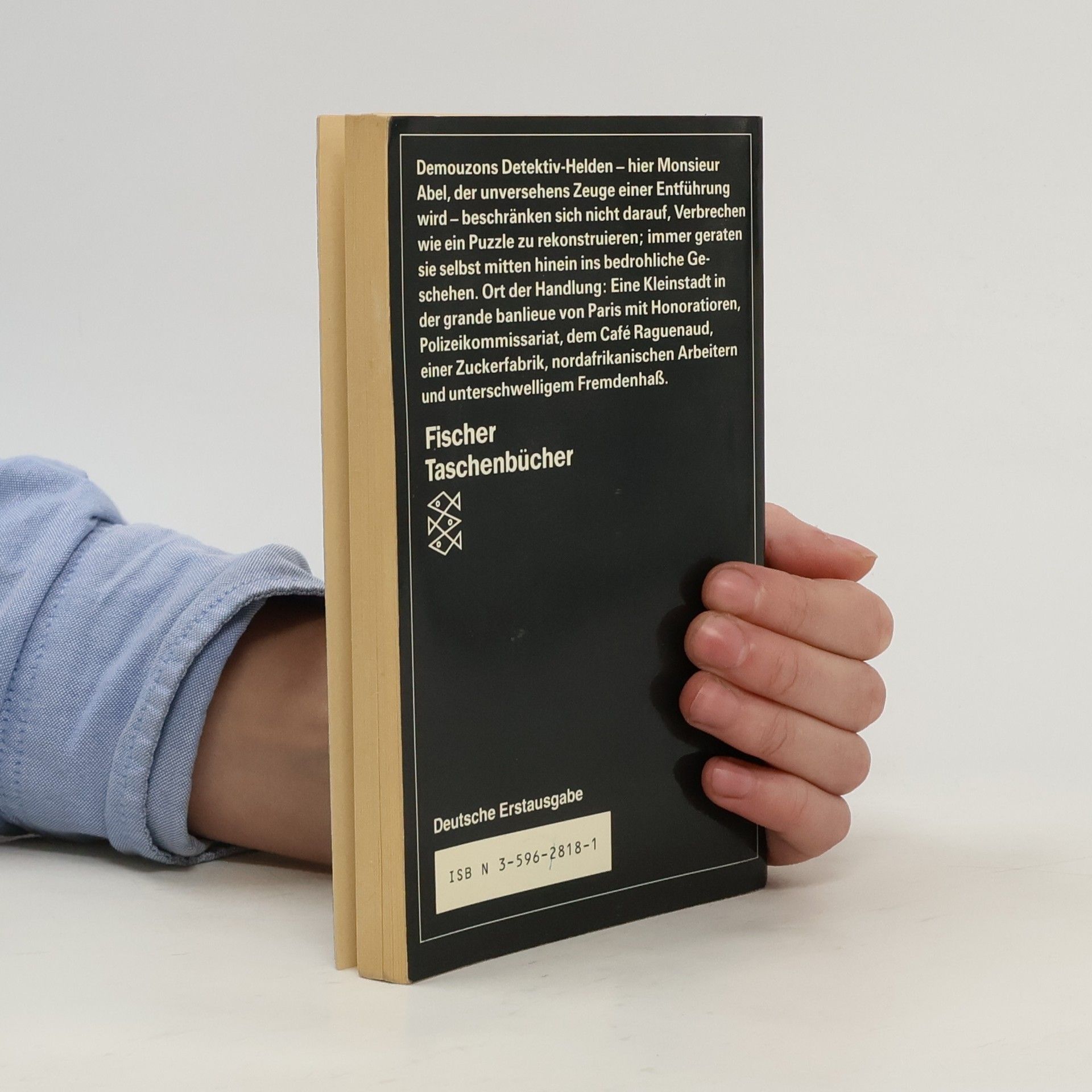 Demouzons Detektiv-Helden – hier Monsieur Abel, der unversehens Zeuge einer Entführung wird – beschränken sich nicht darauf, Verbrechen wie ein Puzzle zu rekonstruieren; immer geraten sie selbst mitten hinein ins bedrohliche Geschehen. Ort der Eine Kleinstadt in der grande banlieue von Paris mit Honoratioren, Polizeikommissariat, dem Café Raguenaud, einer Zuckerfabrik, nordafrikanischen Arbeitern und unterschwelligem Fremdenhaß. (Dieser Text bezieht sich auf eine frühere Ausgabe.)