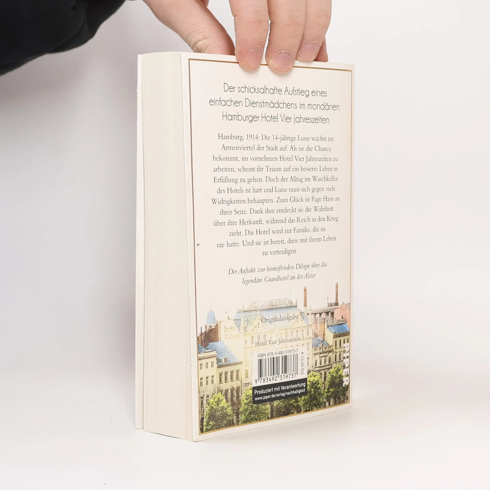 Der schicksalhafte Aufstieg einer einfachen Wäscherin im mondänen Hamburger Hotel Vier Jahreszeiten Die große Saga rund um die fesselnde Geschichte des Hamburger Luxushotels während der beiden Weltkriege Hamburg, 1914: die 14jährige Luise wäscht im Armenviertel der Stadt auf. Als sie die Chance bekommt, im vornehmen Hotel Vier Jahreszeiten zu arbeiten, scheint ihr Traum auf ein besseres Leben in Erfüllung zu gehen. Doch der Alltag im Waschkeller des Hotels ist hart und Luise muss sich gegen viele Widrigkeiten behaupten. Zum Glück ist Page Hans an ihrer Seite. Dank ihm entdeckt sie die Wahrheit über ihre Herkunft, während draußen der Krieg tobt. Das Hotel wird zu ihrer Familie, die sie nie hatte. Und sie ist bereit, diese mit ihrem Leben zu verteidigen. Der Auftakt zur hinreißenden zweiteiligen Reihe über das legendäre Grandhotel an der Alster - von der Autorin der Speicherstadt-Saga.