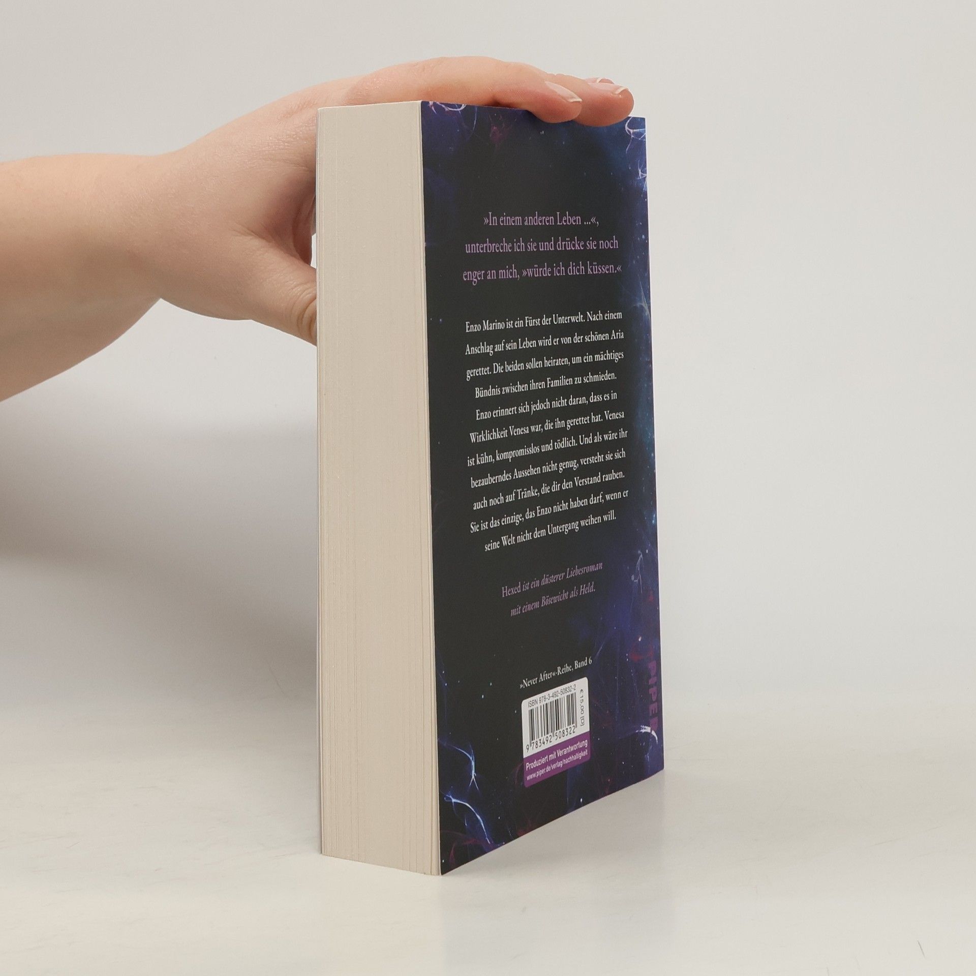 Er ist der Prinz der Cosa Nostra und sie die Hexe, die ihm sein Herz stiehlt. Venesa Andersen war nie gut genug für ihre Eltern oder ihren Onkel, der sie nach dem Tod ihrer Eltern aufgenommen hat. Doch sie ist gerissen, schön und hat keinen Platz für einen moralischen Kompass. Als ihre weggelaufene Cousine in die Küstenstadt zurückkehrt, bringt sie einen Mann mit, der Venesa als die erste sieht, die sie wirklich ist. Doch sie kann ihn niemals haben. Enzo Marino ist tagsüber ein reicher Geschäftsmann und nachts ein Fürst der Unterwelt, Unterboss eines gefürchteten Mafia-Syndikats, dem nur sein Vater, der mächtigste Don im Nordosten, übergeordnet ist. Als er heiraten soll, denkt Enzo nicht lange nach, bis er die Cousine seiner Verlobten trifft. Venesa ist alles, was er nie wusste, dass er wollte, und sie verzaubert ihn mit ihrer sinnlichen Stimme und ihren Kurven. Doch Enzo hat gelernt, dass das Leben für einen Mann wie ihn besser ist ohne die Dinge, die er will. Als die Versuchung jedoch unwiderstehlich wird, müssen sie entscheiden, ob die Pflicht gegenüber ihren Familien oder eine verbotene Liebe, die nie hätte sein sollen, wichtiger ist. Hexed ist ein düsterer Liebesroman und der sechste Teil der Never-After-Serie, in der Bösewichte die Helden sind.