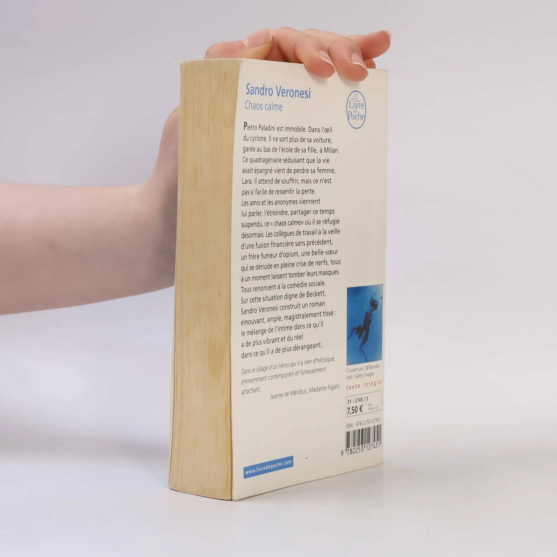 Pietro Paladini est immobile. Dans l’oeil du cyclone. Il ne sort plus de sa voiture, garée au bas de l’école de sa fille, à Milan. Ce quadragénaire séduisant que la vie avait épargné vient de perdre sa femme, Lara. Il attend de souffrir, mais ce n’est pas si facile de ressentir la perte. Les amis et les anonymes viennent lui parler, l’étreindre, partager ce temps suspendu, ce « chaos calme» où il se réfugie désormais. Les collègues de travail à la veille d’une fusion financière sans précédent, un frère fumeur d’opium, une belle-soeur qui se dénude en pleine crise de nerfs, tous à un moment laissent tomber leurs masques. Tous renoncent à la comédie sociale. Sur cette situation digne de Beckett, Sandro Veronesi construit un roman émouvant, ample, magistralement tissé : le mélange de l’intime dans ce qu’il a de plus vibrant et du réel dans ce qu’il a de plus dérangeant.