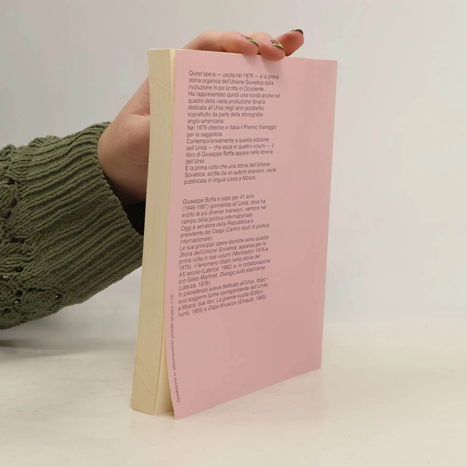1928-1941 La battaglia di Bucharin. Industralizzazione. Collettivizzazione. Dispotismo e terrore staliniano.Questa opera - uscita nel 1976 - è la prima storia organica dell'Unione Sovietica dalla rivoluzione in poi scritta in Occidente. Ha rappresentato quindi una novità anche nel quadro della vasta produzione libraria dedicata all'Urss negli anni postbellici soprattutto da parte della storiografia anglo-americana. Nel 1979 ottenne in Italia il Premio Viareggio per la saggistica. Contemporaneamente a questa edizione dell'Unità - che esce in quattro volumi - il libro di Giuseppe Boffa appare nelle librerie dell'Urss. E' la prima volta che una storia dell'Unione Sovietica, scritta da un autore straniero, viene pubblicato in lingua russa a Mosca.Edizione su licenza di Arnoldo Mondadori Editore.