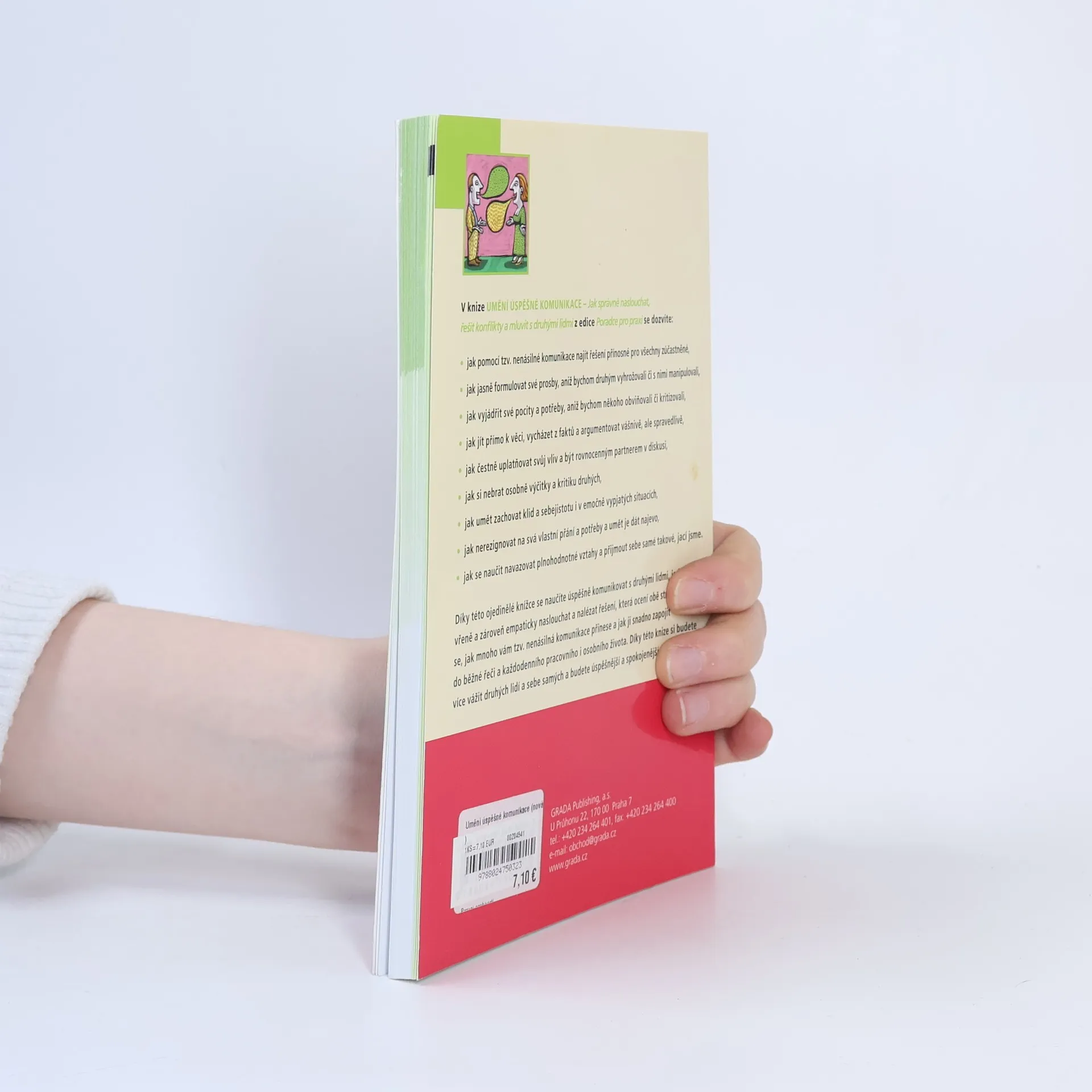 V knize UMĚNÍ ÚSPĚŠNÉ KOMUNIKACE – Jak správně naslouchat, řešit konflikty a mluvit s druhými lidmi se dozvíte: - jak pomocí tzv. nenásilné komunikace najít řešení přínosné pro všechny zúčastněné - jak jasně formulovat své prosby, aniž bychom druhým vyhrožovali či s nimi manipulovali - jak vyjádřit své pocity a potřeby, aniž bychom někoho obviňovali či kritizovali - jak jít přímo k věci, vycházet z faktů a argumentovat vášnivě, ale spravedlivě - jak čestně uplatňovat svůj vliv a být rovnocenným partnerem v diskusi - jak si nebrat osobně výčitky a kritiku druhých - jak umět zachovat klid a sebejistotu i v emočně vypjatých situacích - jak nerezignovat na svá vlastní přání a potřeby a umět je dát najevo - jak se naučit navazovat plnohodnotné vztahy a přijmou sebe samé takoví, jací jsme Díky této ojedinělé knížce se naučíte úspěšně komunikovat s druhými lidmi, jednat otevřeně a zároveň empaticky naslouchat a nalézat řešení, která ocení obě strany. Dozvíte se, jak mnoho vám tzv. nenásilná komunikace přinese a jak ji snadno zapojit do běžné řeči a každodenního pracovního i osobního života. Díky této knize si budete více vážit druhých lidí a sebe samých a budete úspěšnější a spokojenější.