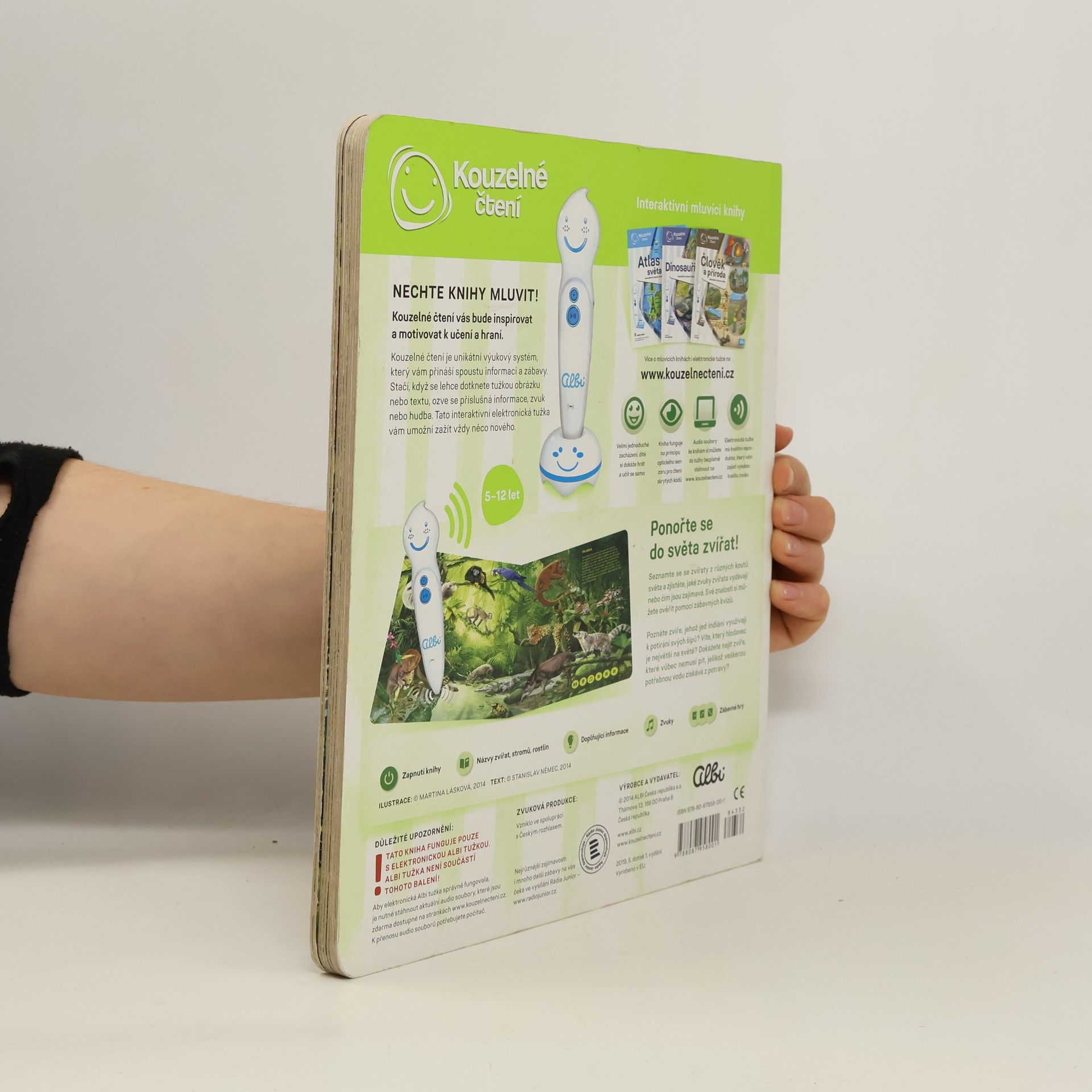 Ponořte se do světa zvířat! Seznamte se se zvířaty ze všech koutů světa a zjistěte, jaké zvuky vydávají, čím se živí nebo čím jsou jedinečná. Kniha vás tématicky provede osmi různými prostředími z naší planety, jako je les, savana, poušť, moře a další. Na každé straně se dozvíte, jaká zvířata v daném prostředí žijí, jak se jmenují, jaké zvuky vydávají a čím jsou zajímavá. Své znalosti si pak můžete ověřit pomocí zábavných kvízů, které jsou vždy rozděleny do tří kategorií: najdi zvíře podle názvu, najdi zvíře podle zvuku, najdi zvíře podle zajímavosti. Kniha je namluvena známým českým hercem Otakarem Brouskem ml. Kniha obsahuje přes 900 zvuků a textů. Kniha vznikla ve spolupráci s Českým rozhlasem.