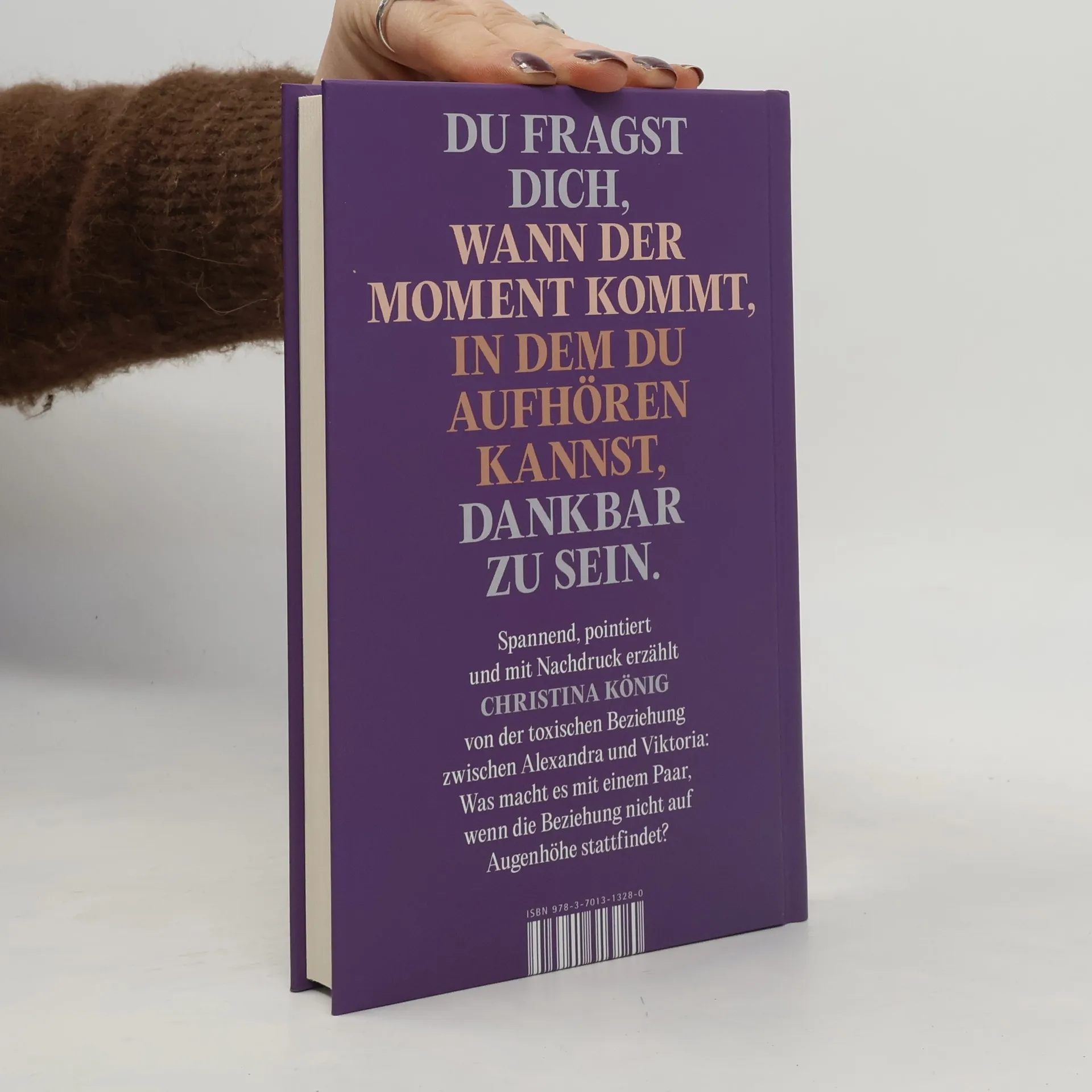 Alex und Viktoria sind ein Paar und leben unter einem Dach. Es ist Viktorias Dach – schick möbliert, große Räume, Terrasse mit Pool. Alex darf mietfrei dort wohnen, muss jedoch Putzfrau und Haushälterin spielen. Sie nimmt Viktorias Geschenke und ihre finanzielle Unterstützung an, nutzt auch gerne das Massagestudio im Gartenhaus für ihr berufliches Fortkommen, wird dafür aber zunehmend zu Viktorias Marionette degradiert. Das eigene Massagestudio war schon lange Alex’ Traum – also richtet sie sich ein in diesem ungesunden Kompromiss.Ein Verlobungsring, den Alex bei Viktoria findet, zwingt dann einen Entschluss herbei. Doch weil dieser Roman ein wenig ungewöhnlich ist und genauso schlecht Entscheidungen treffen kann wie Alex, erzählt er gleich mehrere Möglichkeiten: Wird Alex Viktoria verlassen? Wenn ja, wie geht es für Alex weiter, beruflich und privat? Schafft sie es, sich endgültig von Viktoria zu lösen?Auf direkte und schonungslose Art erzählt Christina König von einer toxischen Beziehung und deren weitreichenden Folgen und umkreist dabei auf originelle Weise Möglichkeiten daraus wieder herauszufinden – oder auch nicht.