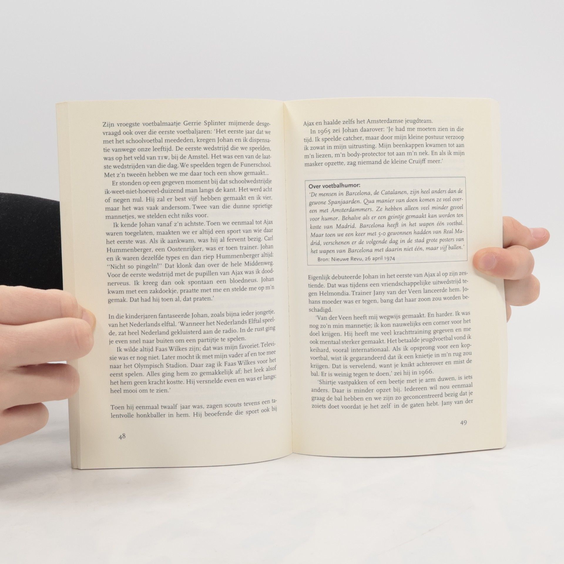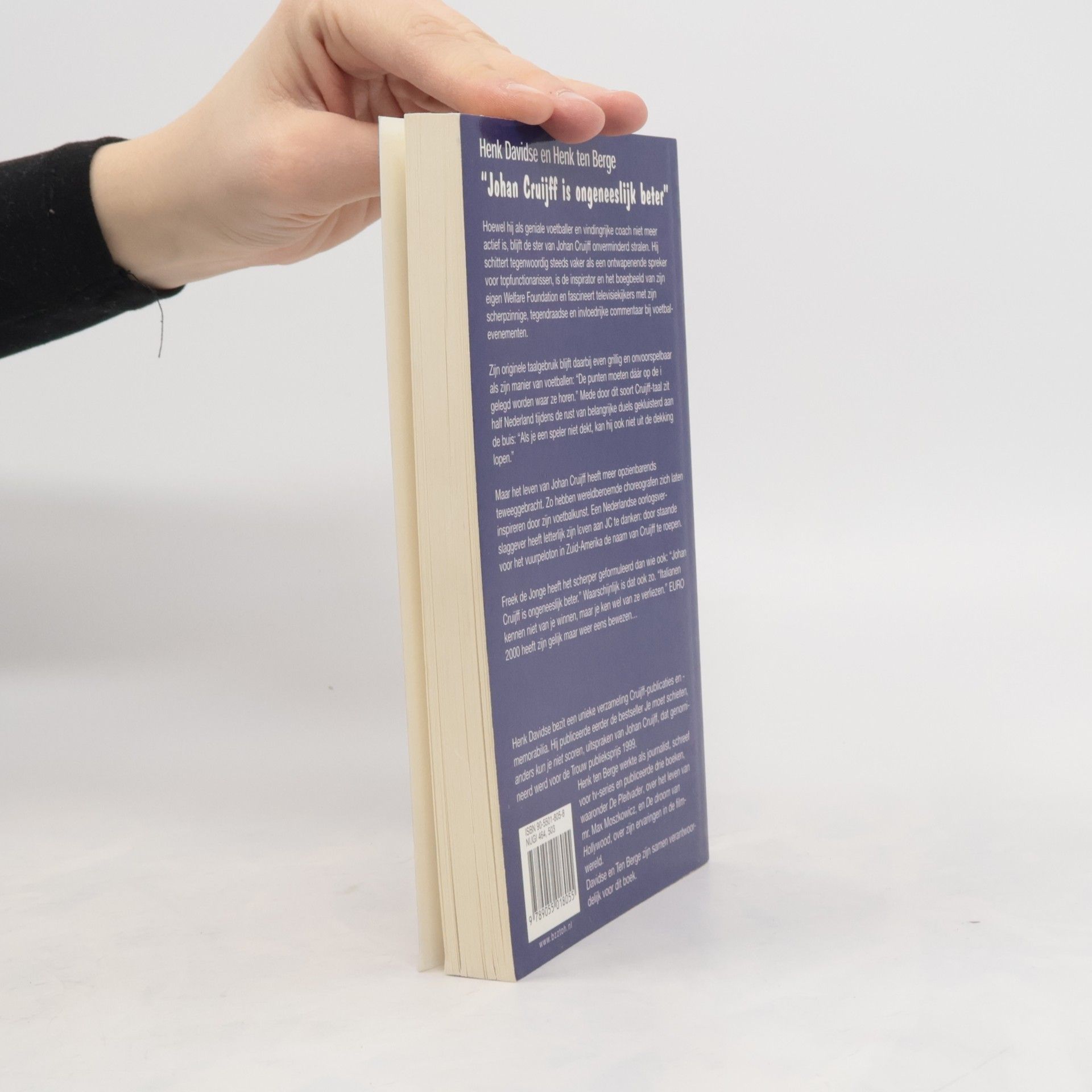 Freek de Jonge heeft het scherper geformuleerd dan wie ook: 'Johan Cruijff is ongeneeslijk beter'. Waarschijnlijk is dat ook zo. 'Italianen kennen niet van je winnen, maar je ken wel van ze verliezen.' EURO 2000 heeft zijn gelijk maar weer eens bewezen... Hoewel hij als geniale voetballer en vindingrijke coach niet meer actief is, blijft de ster van Johan Cruijff onverminderd stralen. Hij schittert tegenwoordig steeds vaker als een ontwapenende spreker voor topfunctionarissen, is de inspirator van zijn Welfare Foundation en fascineert televisiekijkers met zijn scherpzinnige, tegendraadse en invloedrijke commentaar bij voetbalevenementen. Zijn originele taalgebruik blijft daarbij even grillig en onvoorspelbaar als zijn manier van voetballen: 'De punten moeten daar op de i gelegd worden waar ze horen.' Mede door dit soort Cruijff-taal zit half Nederland tijdens de rust van belangrijke duels gekluisterd aan de buis: 'Als je een speler niet dekt, kan hij ook niet uit de dekking lopen.' Maar het leven van Johan Cruijff heeft meer opzienbarends teweeggebracht. Zo hebben wereldberoemde choreografen zich laten inspireren door zijn voetbalkunst. Een Nederlandse oorlogsverslaggever heeft letterlijk zijn leven aan JC te danken: door staande voor het vuurpeloton in Zuid-Amerika de naam van Cruijff te roepen.