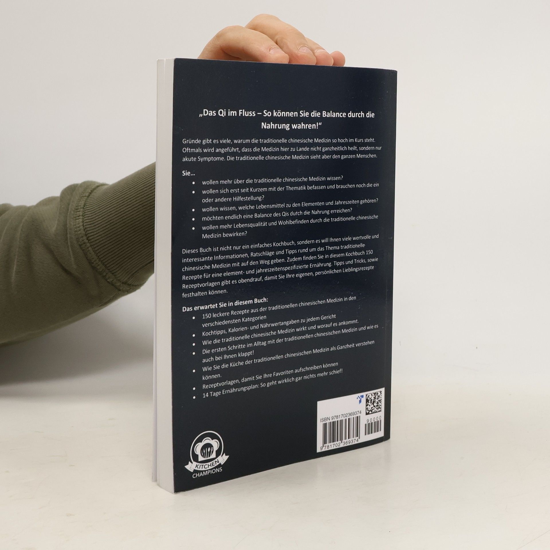 5-Elemente-Kochbuch für Anfänger! Gesund kochen nach der chinesischen Ernährungslehre mit 150 abwechslungsreichen & leckeren Rezepten. Inkl. Einführung in die Traditionelle Chinesische Medizin / TCM ★ Sie sind auf der Suche nach einem praktischen Kochbuch/Ratgeber, welches die Küche der traditionellen chinesischen Medizin lecker und anschaulich repräsentiert? ★ Sie wollen mehr Lebensqualität und Wohlbefinden durch die traditionelle chinesische Medizin bewirken? ★ Sie möchten nicht nur schnell und gesund kochen, sondern Ihr Qi positiv und dauerhaft beeinflussen? ★ Die Küche der traditionellen chinesischen Medizin ist mehr als ein Trend. Doch die ersten Schritte fallen Ihnen schwer? Im Laufe der Zeit bekam die traditionelle chinesische Medizin (TCM) eine immer größere Bedeutung zugeschrieben. Anders, wie die Schulmedizin aus unseren Breitengraden, befasst sich die TCM mit dem gesamten Menschen. Diese Gesamtheit ist es, bei der die TCM bereits vielen Menschen zu mehr Wohlbefinden und Gesundheit verhelfen konnte. Da die TCM aber sehr komplex ist und eine umfangreiche Ausbildung voraussetzt ist es nur naheliegend, dass Sie mittels eines Buches nicht das über Jahrtausende gesammelte Wissen binnen einiger Seiten lernen können. Doch ist es Ihnen möglich, die TCM so kennen zu lernen, dass Sie einen Teil davon in den eigenen vier Wänden zubereiten können - nämlich die Küche der TCM! Zudem soll Ihnen dieses Buch viele weitere und wertvolle Informationen liefern! In diesem Buch dürfen Sie sich unter anderem auf folgende Themen freuen: Kulinarische Vielfalt: 150 abwechslungsreiche und einfache Rezepte, darunter auch vegane & vegetarische. Traditionelle chinesische Medizin: Die Grundlagen für Einsteiger einfach erklärt! Rezepte nach Kategorien: Frühstück, Mittagessen, Abendessen, Smoothies, Für die Arbeit/Schule (zum Mitnehmen) Die Umsetzung: Wir räumen mit Irrtümern auf und geben Ihnen sinnvolle Tipps! Schlemmen Sie durch den Tag: Die Fünf Elemente und Jahreszeiten geben es lecker vor! Mehr Balance und Gleichgewicht: So bringen Sie Ihr Qi in einen gleichmäßigen Fluss! Schnell und gesund: Das kann die Küche der TCM! Nährwerte & Tipps: Kochtipps, Kalorien- und Nährwertangaben zu jedem Rezept. 5-Elemente Ernährungstabelle: Tabelle mit über 250 verschiedenen Lebensmitteln. Das Qi im Gleichgewicht: Rezepte, die dies fördern! Saisonaler Kalender: Diese Lebensmittel bekommen Sie in diesen Monaten aus dem heimischen Anbau! Für Familien, Kinder, Studenten, Faule & Einsteiger: schnelle & leckere Rezepte, die auch zum Abnehmen ohne Hunger geeignet sind. Rezeptvorlagen: Erstellen Sie Ihre eigenen Lieblingsrezepte. 14 Tage Ernährungsplan: So geht wirklich gar nichts mehr schief! Wenn Sie nun wissen möchten, wie Sie mit der Küche der TCM und den tollen Rezepten in diesem Kochbuch, Ihr Qi zurück in die Balance, das Yin und Yang, führen können, dann fügen Sie dieses Buch doch einfach jetzt mit einem Klick oben rechts auf ,,In den Einkaufswagen" Ihrem Warenkorb hinzu, um Ihr persönliches Exemplar noch heute zu sichern! Das ausgewogene Leben kann beginnen. Sind Sie auch dabei? Wer sind die Kitchen Champions? Die Kitchen Champions sind ein Team von leidenschaftlichen Köchen und Ernährungsberatern, die sich auf Kochbücher und Ernährungsratgeber spezialisiert haben. Dabei sind wir immer darauf bedacht, dass eine Harmonie zwischen einer ausgewogenen Ernährung und kulinarischen Highlights zum Tragen kommt. Wir wissen genau, dass eine gesunde Ernährung nur über leckere Gerichte umsetzbar ist.