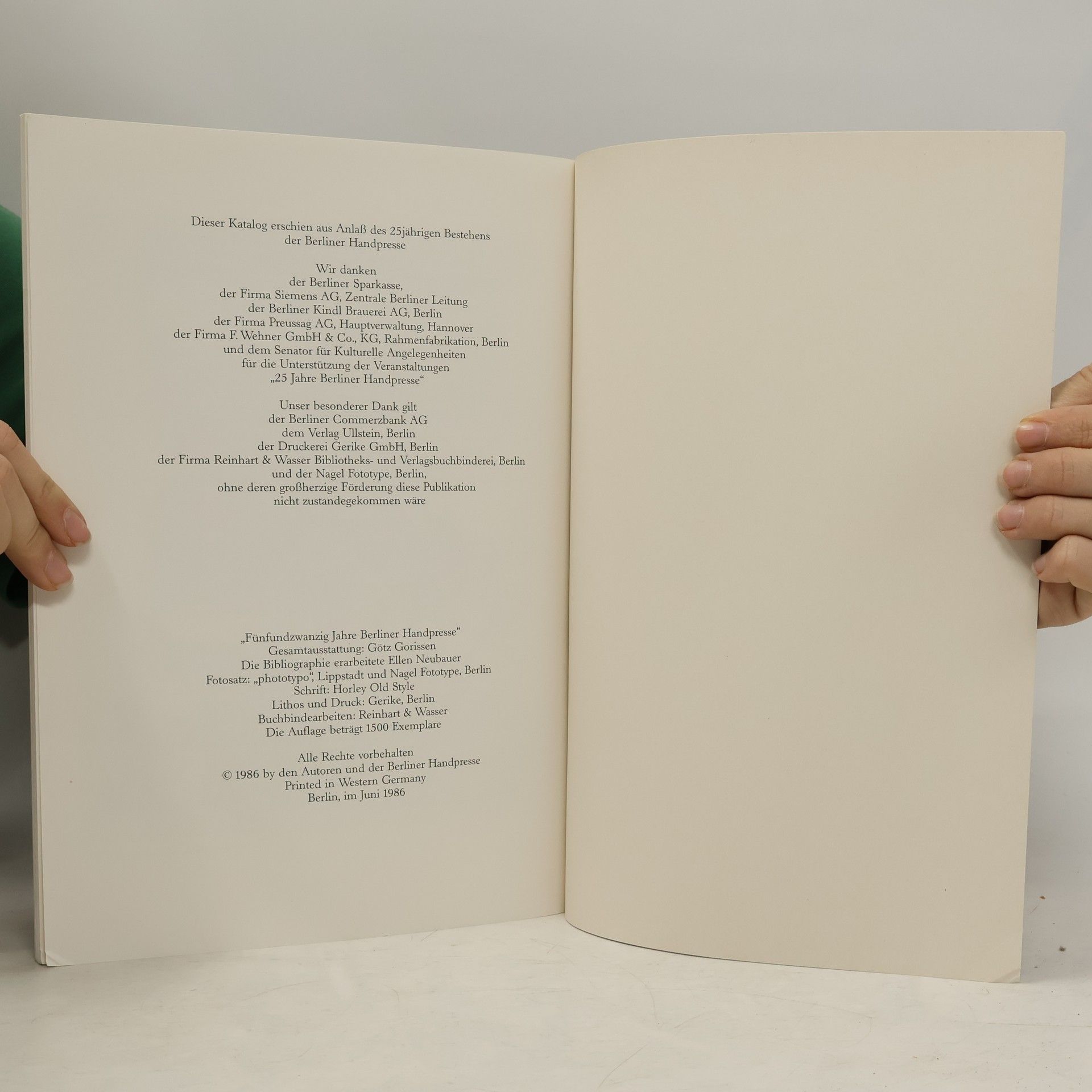 Fünfundzwanzig Jahre Berliner Handpresse, (1961-1986), Götz Gunnar Gorissen