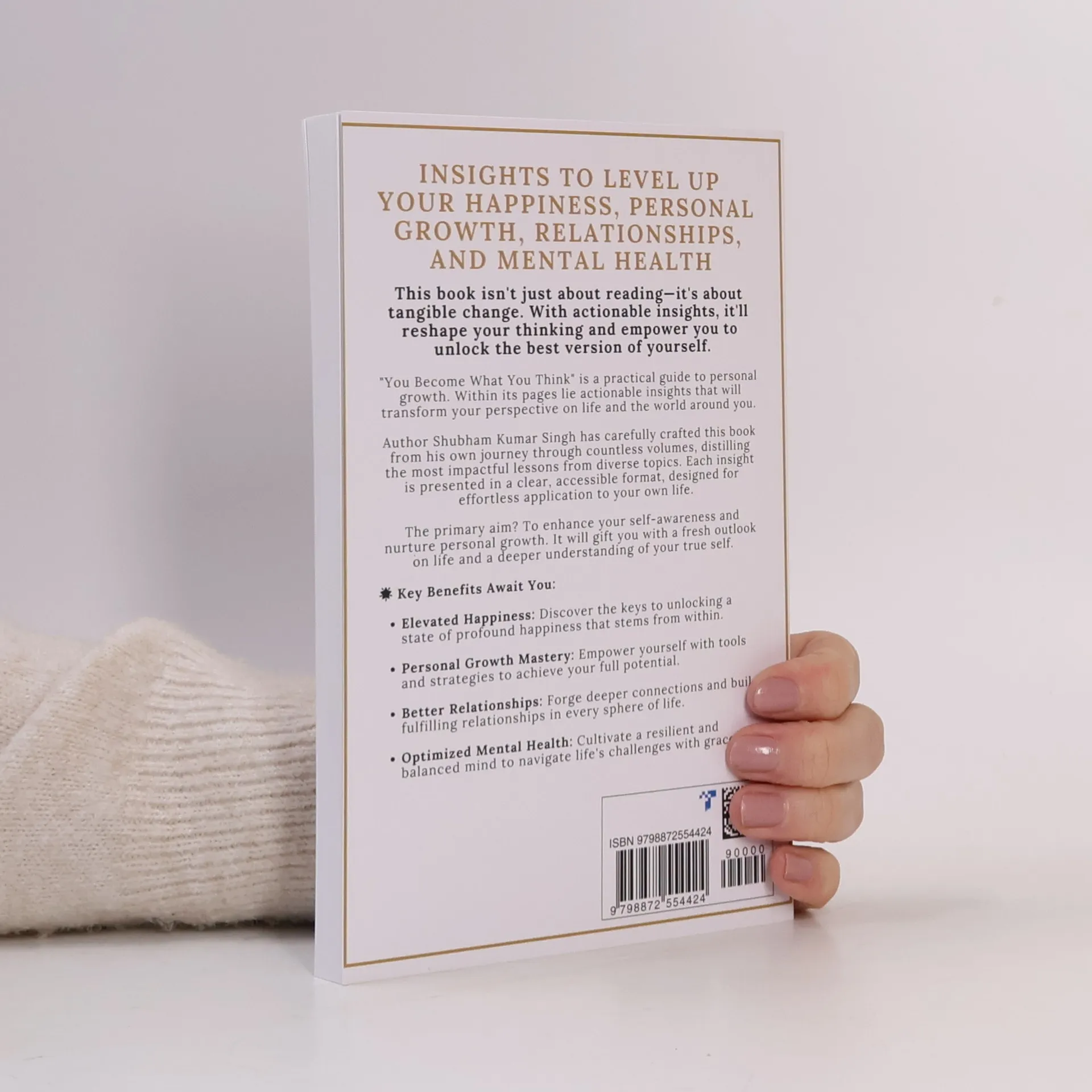 This book offers actionable insights to elevate your happiness, personal growth, relationships, and mental health. It’s not just about reading; it’s about creating tangible change. If you're looking to improve your life and achieve your full potential, this guide is for you. The author, Shubham Kumar Singh, shares lessons from his own transformative journey through various books, presenting them in a clear and accessible format for easy application. The primary goal is to enhance your self-awareness and foster personal growth, providing you with a fresh outlook on life and a deeper understanding of your true self. Key benefits include: - **Elevated Happiness**: Unlock profound happiness that originates from within. - **Personal Growth Mastery**: Equip yourself with tools and strategies to reach your full potential. - **Enhanced Relationships**: Create deeper connections and build fulfilling relationships across all areas of life. - **Optimized Mental Health**: Develop a resilient and balanced mindset to gracefully navigate life's challenges. This practical guide will reshape your thinking and empower you to become the best version of yourself. Embrace the journey toward a happier, more fulfilled life.