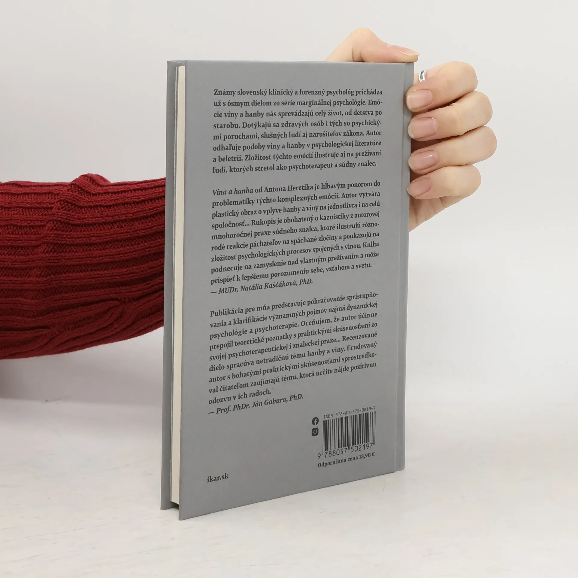 Emócie viny a hanby nás sprevádzajú celý život, od detstva po starobu. Dotýkajú sa zdravých osôb i tých s psychickými poruchami, slušných ľudí aj narušiteľov zákona. Autor odhaľuje podoby viny a hanby v psychologickej literatúre a beletrii. Zložitosť týchto emócií ilustruje aj na prežívaní ľudí, ktorých stretol ako psychoterapeut a súdny znalec. Známy slovenský klinický a forenzný psychológ prichádza už s ôsmym dielom zo série marginálnej psychológie.