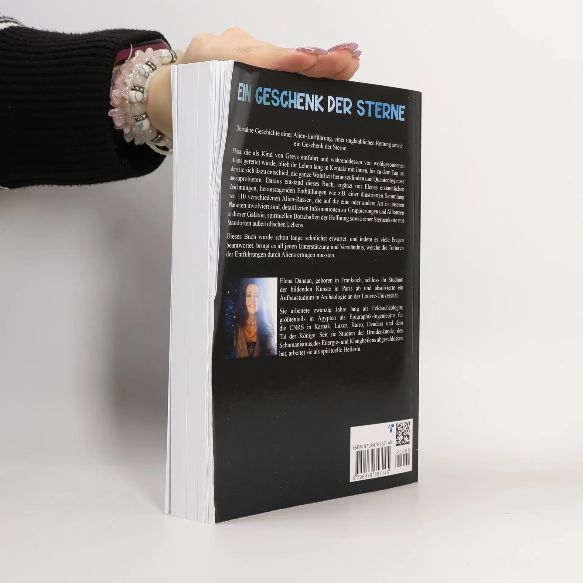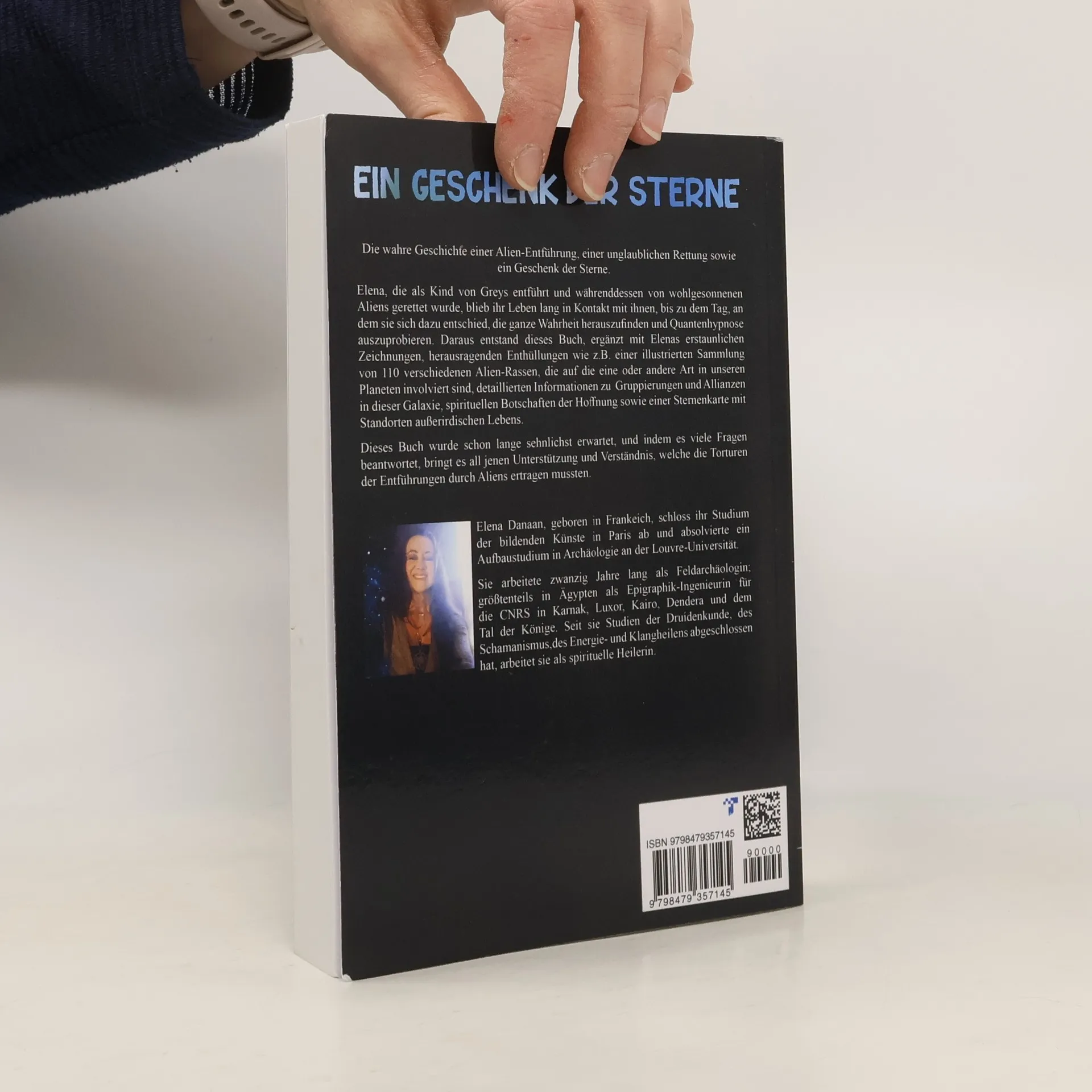 Elena, die als Kind von Greys entführt und währenddessen von wohlgesonnenen Aliens gerettet wurde, blieb ihr Leben lang in Kontakt mit ihnen, bis zu dem Tag, an dem sie sich dazu entschied, die ganze Wahrheit herauszufinden und Quantenhypnose auszuprobieren. Daraus entstand dieses Buch, ergänzt mit Elenas erstaunlichen Zeichnungen, herausragenden Enthüllungen wie z.B. einer illustrierten Sammlung von 110 verschiedenen Alien-Rassen, die auf die eine oder andere Art in unseren Planeten involviert sind, detaillierten Informationen zu Gruppierungen und Allianzen in dieser Galaxie, spirituellen Botschaften der Hoffnung sowie einer Sternenkarte mit Standorten außerirdischen Lebens. Dieses Buch wurde schon lange sehnlichst erwartet, und indem es viele Fragen beantwortet, bringt es all jenen Unterstützung und Verständnis, welche die Torturen der Entführungen durch Aliens ertragen mussten. Elena Danaan, geboren in Frankeich, schloss ihr Studium der bildenden Künste in Paris ab und absolvierte ein Aufbaustudium in Archäologie an der Louvre-Universität. Sie arbeitete zwanzig Jahre lang als Feldarchäologin; größtenteils in Ägypten als Epigraphik-Ingenieurin für die CNRS in Karnak, Luxor, Kairo, Dendera und dem Tal der Könige. Seit sie Studien der Druidenkunde, des Schamanismus, des Energie- und Klangheilens abgeschlossen hat, arbeitet sie als spirituelle Heilerin.