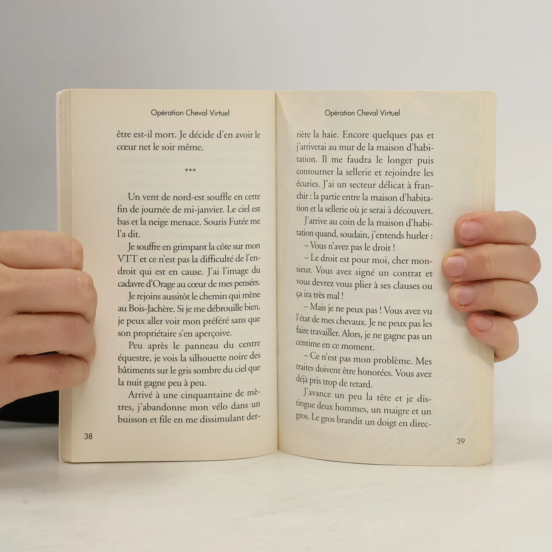 La 4e de couverture indique : "Benjamin vient d'emménager à la campagne. En classe, il découvre l'existence d'Orage, un cheval magnifique qui vit au centre équestre. Malheureusement le propriétaire du centre est en difficulté, ses chevaux sont malades et les soucis d'argent s'accumulent. Benjamin, avec le soutien des villageois et à l'aide du réseau Internet, mettra tout en oeuvre pour sauver Orage et les autres chevaux..."