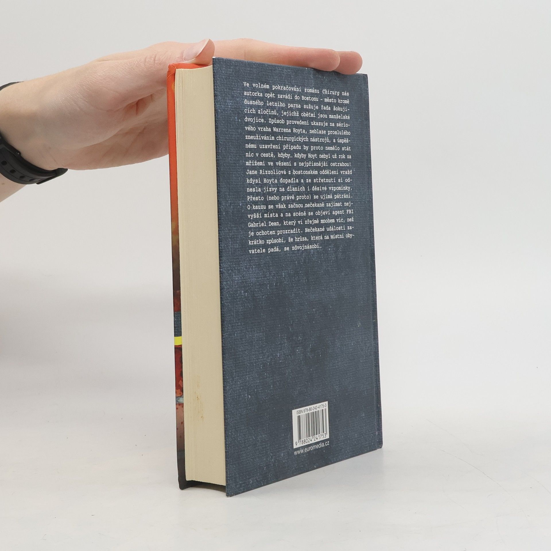 Volné pokračování románu Chirurg – Boston sužuje řada šokujících vražd manželských dvojic. Způsob provedení ukazuje na sériového pachatele Warrena Hoyta přezdívaného Chirurg, úspěšnému uzavření případu by proto nemělo stát nic v cestě, kdyby… Kdyby Hoyt neseděl už rok ve vězení s nejpřísnější ostrahou! Jane Rizzoliová z bostonském oddělení vražd kdysi Hoyta dopadla a ze střetnutí si odnesla jizvy na dlaních i děsivé vzpomínky. Přesto (nebo právě proto) se ujímá pátrání. Nečekané události zakrátko způsobí, že hrůza, která na místní obyvatele padá, se zdvojnásobí…