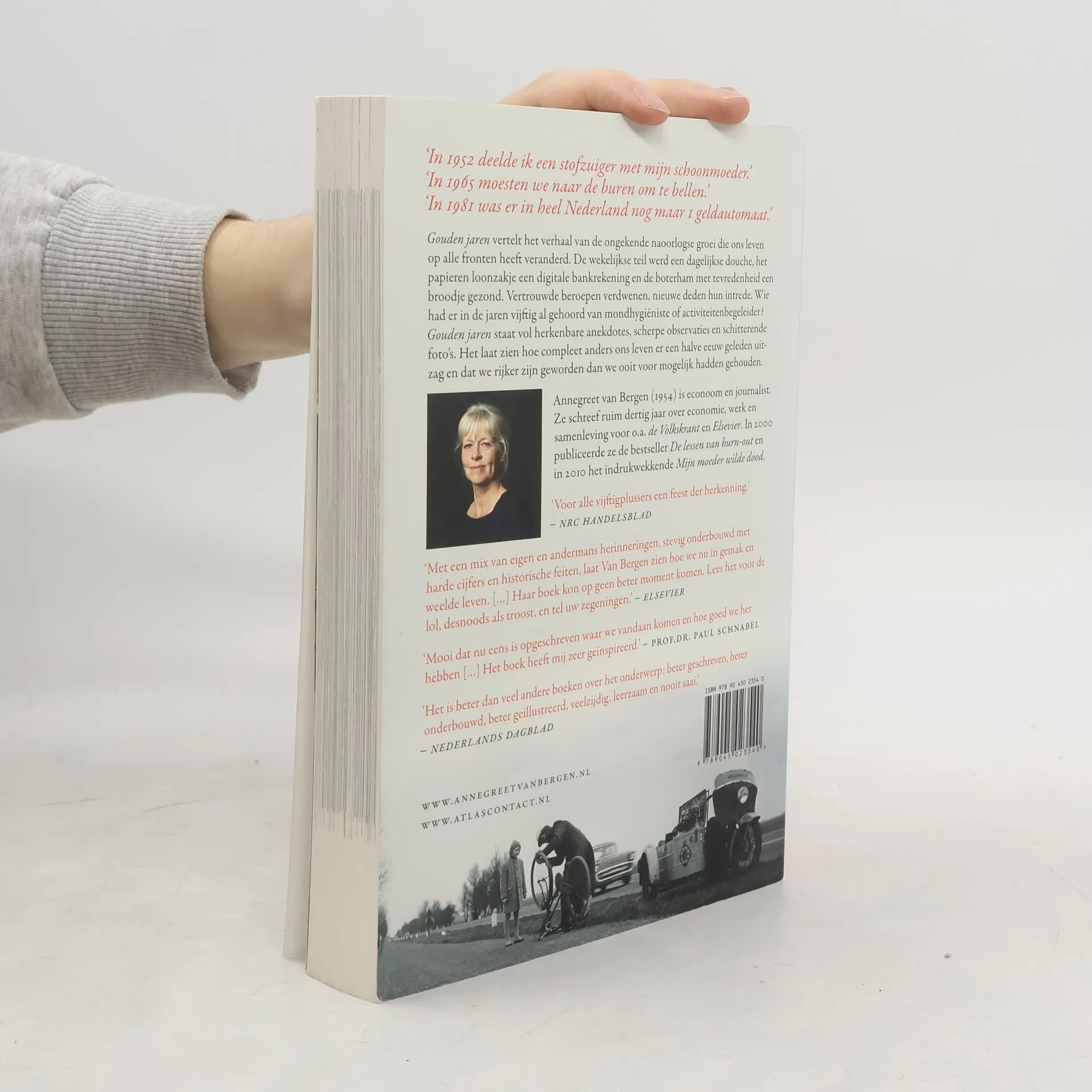 `In 1952 deelde ik een stofzuiger met mijn schoonmoeder. `In 1961 zond de televisie 24 uur uit per week. `In 1965 moesten we naar de buren om te bellen. Gouden jaren vertelt het verhaal van de ongekende naoorlogse groei die ons leven op alle fronten heeft veranderd. De wekelijkse teil werd een dagelijkse douche, het papieren loonzakje een digitale bankrekening en de boterham met tevredenheid een broodje gezond. Vertrouwde beroepen verdwenen, nieuwe deden hun intrede. Wie had er in de jaren vijftig al gehoord van mondhygiëniste of activiteitenbegeleider? Gouden jaren staat vol met herkenbare anekdotes, scherpe observaties en schitterende foto s. Het laat zien hoe compleet anders ons leven er een halve eeuw geleden uitzag en dat we rijker zijn geworden dan we ooit voor mogelijk hadden gehouden.