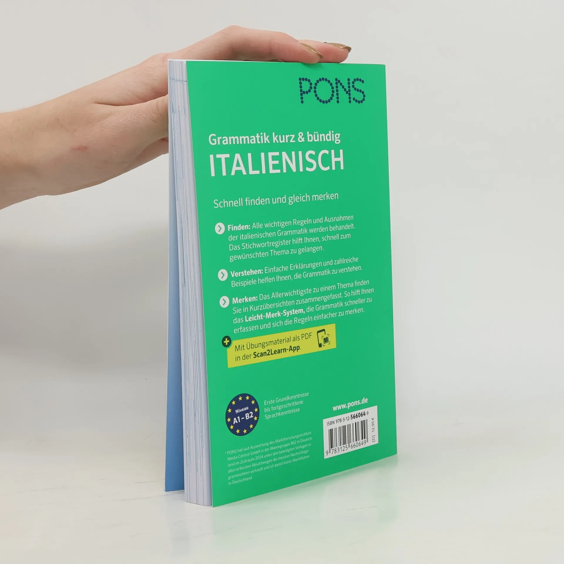 Italienische Grammatikthemen schnell finden und gleich merken Finden: Alle wichtigen Regeln und Ausnahmen der italienischen Grammatik werden behandelt. Das Stichwortregister hilft Ihnen, schnell zum gewünschten Thema zu gelangen. Verstehen: Einfache Erklärungen und zahlreiche Beispiele helfen Ihnen, die italienische Grammatik zu verstehen. Merken: Das Allerwichtigste zu einem Thema finden Sie in Kurzübersichten zusammengefasst. So hilft Ihnen das Leicht-Merk-System, die Grammatik schneller zu erfassen und sich die Regeln einfacher zu merken. Mit Übungsmaterial als PDF in der Scan2Learn-App. Niveau A1-B2: Erste Grundkenntnisse bis fortgeschrittene Sprachkenntnisse
