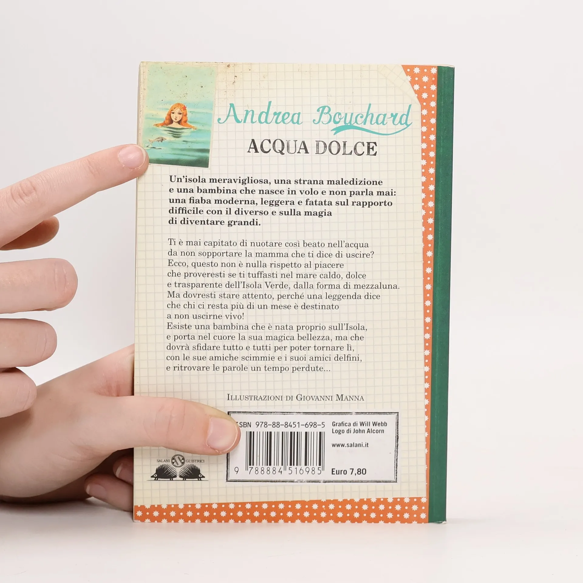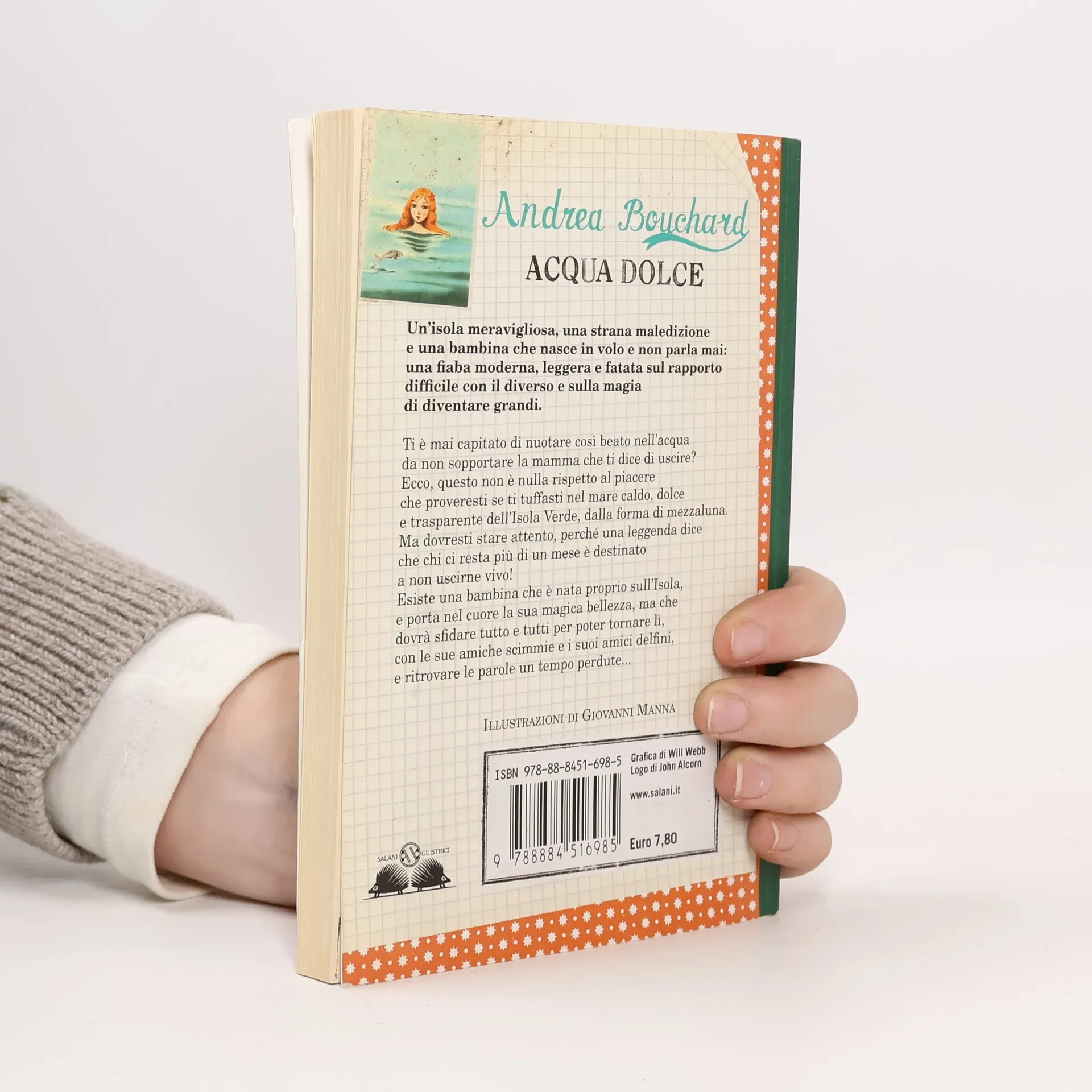 Ti è mai capitato di nuotare così beato nell'acqua da non sopportare la mamma che ti dice di uscire? Ecco, questo non è nulla rispetto al piacere che proveresti se ti tuffasti nel mare caldo, dolce e trasparente dell'Isola Verde, dalla forma di mezzaluna. Ma dovresti stare attento, perché una leggenda dice che chi ci resta più di un mese è destinato a non uscirne vivo! Esiste una bambina che è nata proprio sull'Isola, e porta nel cuore la sua magica bellezza, ma che dovrà sfidare tutto e tutti per poter tornare lì, con le sue amiche scimmie e i suoi amici delfini, e ritrovare le parole un tempo perdute...