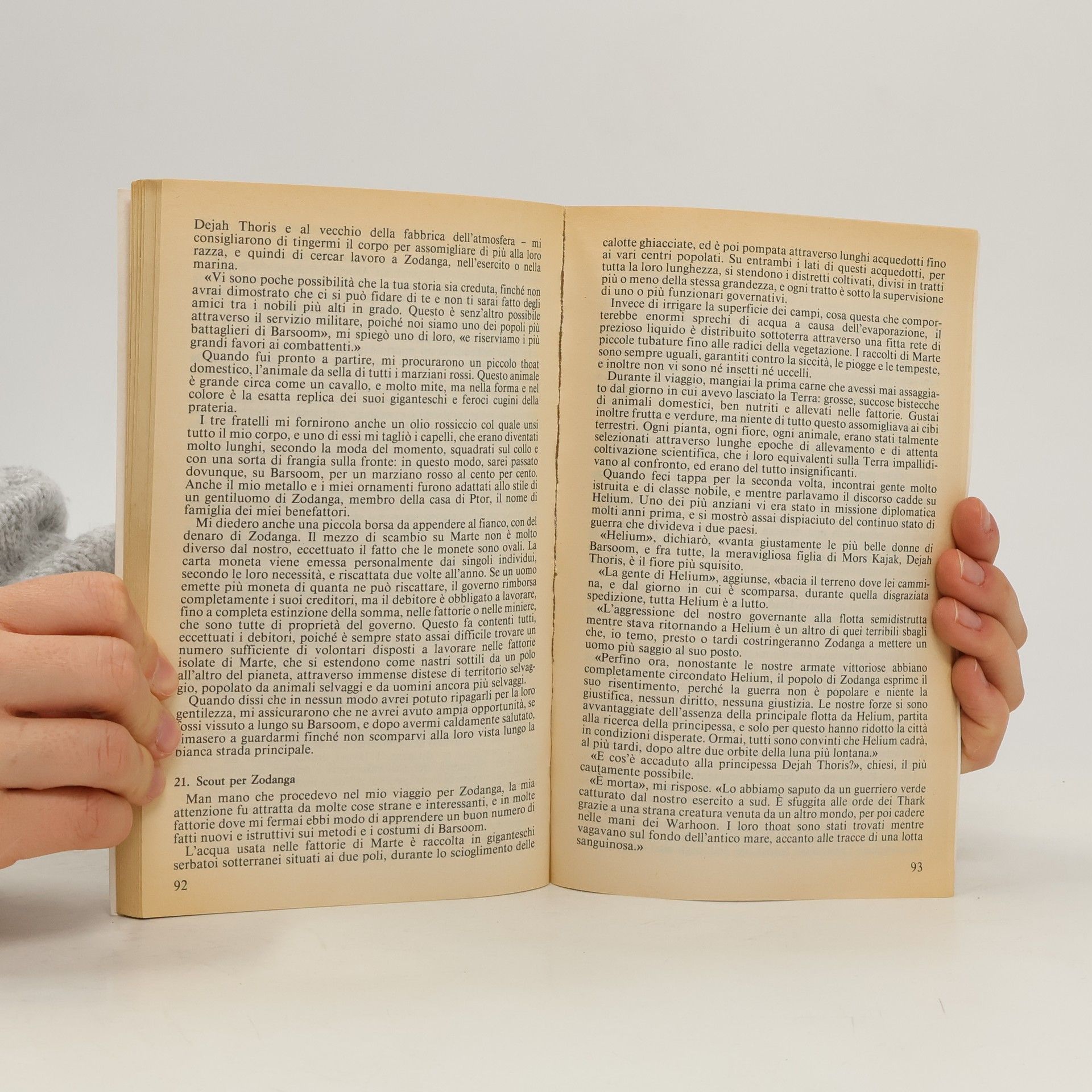 Solo alcune tribù semibarbariche che si combattono senza requie: ecco quanto resta di un'antica civiltà su un pianeta Marte in completa decadenza. In questo strano mondo, la forza bruta e la scienza convivono, tant'è che, spesso, l'abilità e la forza nel maneggiare la spada possono avere la meglio su qualsiasi ritrovato scientifico. Primo di dieci romanzi, Sotto le lune di Marte ci fa conoscere il Capitano John Carter il quale, approdato sul Pianeta Rosso, incontra la bellissima Principessa Dejah Thoris, se ne innamora e... Questo romanzo rappresenta l'inizio della Science Fantasy, che tanto successo riscuote a tutt'oggi grazie alla commistione di elementi barbarici e scientifici.