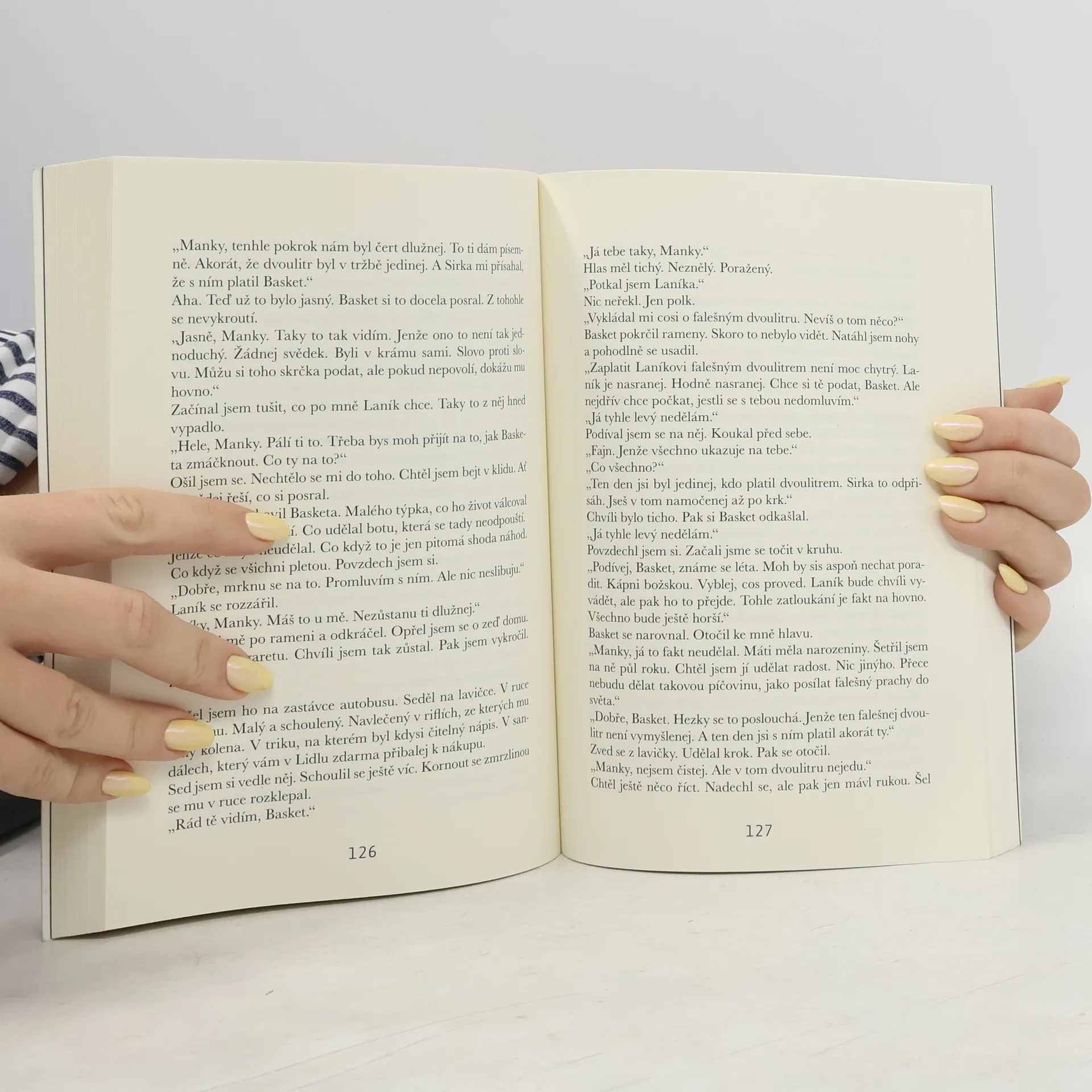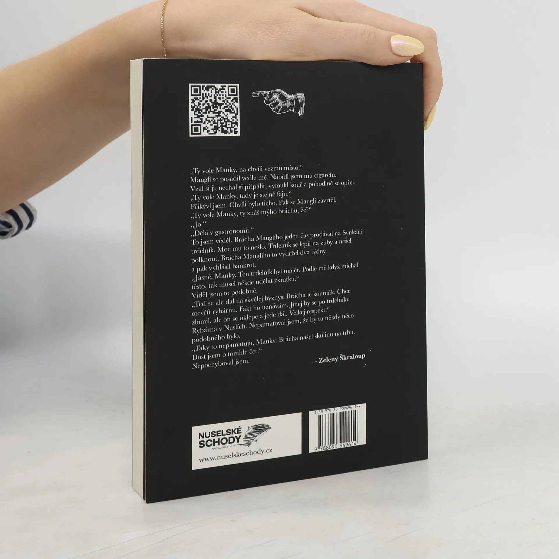 Nové neobyčejné příběhy z Nuslí, sepsané autorem Nuselkýho punku. „Ty vole Manky, na chvíli vezmu místo.“ Mauglí se posadil vedle mě. Nabídl jsem mu cigaretu. Vzal si ji, nechal si připálit, vyfoukl kouř a pohodlně se opřel. „Ty vole Manky, tady je stejně fajn.“ Přikývl jsem. Chvíli bylo ticho. Pak se Mauglí zavrtěl. „Ty vole Manky, ty znáš mýho bráchu, že?“ „Jo.“ „Dělá v gastronomii.“ To jsem věděl. Brácha Mauglího jeden čas prodával na Synkáči trdelník. Moc mu to nešlo. Trdelník se lepil na zuby a nešel polknout. Brácha Mauglího to vydržel dva týdny a pak vyhlásil bankrot. „Jasně, Manky. Ten trdelník byl malér. Podle mě když míchal těsto, tak musel někde udělat zkratku.“ Viděl jsem to podobně. „Teď se ale dal na skvělej byznys. Brácha je koumák. Chce otevřít rybárnu. Fakt ho uznávám. Jinej by se po trdelníku zlomil, ale on se oklepe a jede dál. Velkej respekt.“ Rybárna v Nuslích. Nepamatoval jsem, že by tu někdy něco podobného bylo. „Taky to nepamatuju, Manky. Brácha našel skulinu na trhu. Dost jsem o tomhle čet.“ Nepochyboval jsem. — Zelený Škraloup
