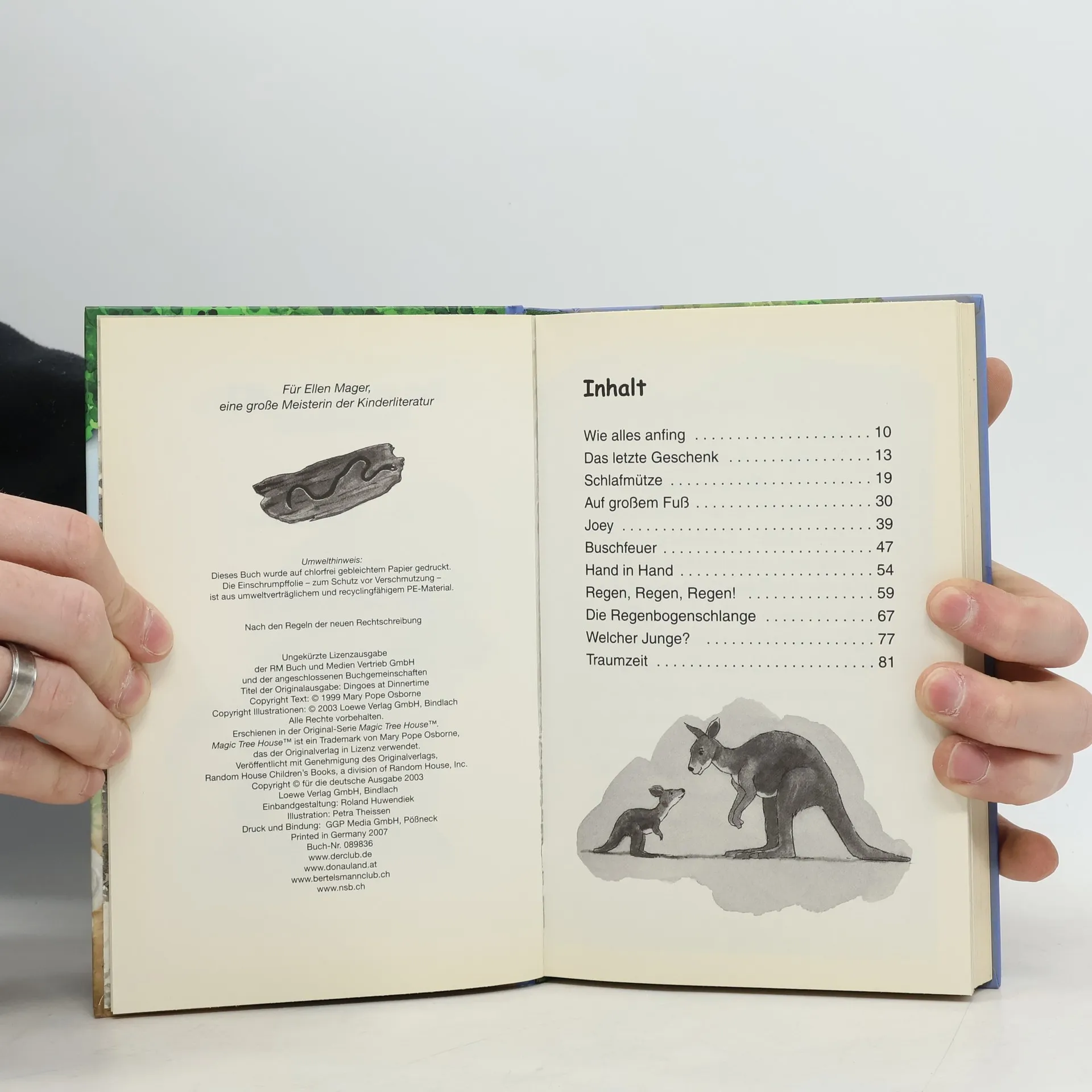 Rettung in der Wildnis Gleißend helles Sonnenlicht scheint in das Baumhaus. Als Philipp und Anne aus dem Fenster schauen, trauen sie ihren Augen kaum: Sie sind mitten im australischen Busch gelandet. Die Geschwister treffen auf Koalas und Kängurus. Doch auch Dingos treiben hier ihr Unwesen. Und die haben es auf ein süßes Kängurubäby abgesehen... Abenteuer in Olympia Philipp und Anne können es kaum glauben: Das magische Baumhaus hat sie zu den Olympischen Spielen ins alte Griechenland gebracht! Doch bald muss Anne feststellen, dass für Mädchen dort fas alles verboten ist, was Spaß macht. Als sie sich beim Wagenrennen dennoch heimlich unter die Zuschauer mischt, geraten die Geschwister in ernsthafte Schwierigkeiten...