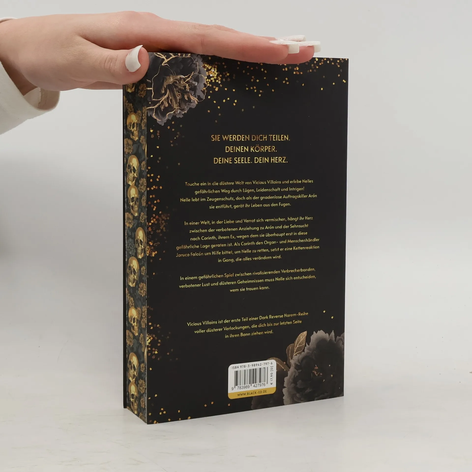 +++ Aufwendig gestaltete Ausgabe mit Farbschnitt +++ SIE WERDEN DICH TEILEN. DEINEN KÖRPER. DEINE SEELE. DEIN HERZ. Tauche ein in die düstere Welt von Vicious Villains und erlebe Nelles gefährlichen Weg durch Lügen, Leidenschaft und Intrigen! Nelle lebt im Zeugenschutz, doch als der gnadenlose Auftragskiller Arón sie entführt, gerät ihr Leben aus den Fugen. In einer Welt, in der Liebe und Verrat sich vermischen, hängt ihr Herz zwischen der verbotenen Anziehung zu Arón und der Sehnsucht nach Corinth, ihrem Ex, wegen dem sie überhaupt erst in diese gefährliche Lage geraten ist. Als Corinth den Organ- und Menschenhändler Jaruco Falcón um Hilfe bittet, um Nelle zu retten, setzt er eine Kettenreaktion in Gang, die alles verändern wird. In einem gefährlichen Spiel zwischen rivalisierenden Verbrecherbanden, verbotener Lust und düsteren Geheimnissen muss Nelle sich entscheiden, wem sie trauen kann. Stell dir eine Welt vor, in der die Guten nicht immer so gut und die Bösen noch böser sind. Das ist 'Vicious Villains'. Intrigen, Verrat und absolut dunkler Spice - und du bist mittendrin. Ein Abenteuer, das deinen moralischen Kompass auf den Kopf stellt und deinen Puls rasen lässt. Du wirst es lieben, versprochen! Vicious Villains ist der erste Teil einer Dark-Reverse-Harem-Reihe voller düsterer Verlockungen, die dich bis zur letzten Seite in ihren Bann ziehen wird.