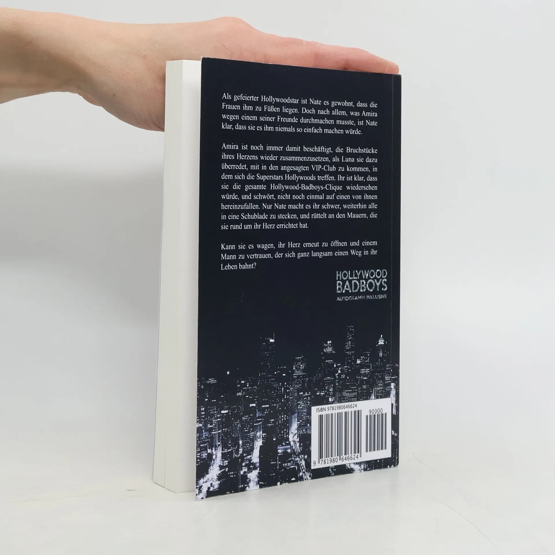 Als gefeierter Hollywoodstar ist Nate es gewohnt, dass die Frauen ihm zu Füßen liegen. Doch nach allem, was Amira wegen einem seiner Freunde durchmachen musste, ist Nate klar, dass sie es ihm niemals so einfach machen würde. Amira ist noch immer damit beschäftigt, die Bruchstücke ihres Herzens wieder zusammenzusetzen, als Luna sie dazu überredet, mit in den angesagten VIP-Club zu kommen, in dem sich die Superstars Hollywoods treffen. Ihr ist klar, dass sie die gesamte Hollywood-Badboys-Clique wiedersehen würde, und schwört, nicht noch einmal auf einen von ihnen hereinzufallen. Nur Nate macht es ihr schwer, weiterhin alle in eine Schublade zu stecken, und rüttelt an den Mauern, die sie rund um ihr Herz errichtet hat. Kann sie es wagen, ihr Herz erneut zu öffnen und einem Mann zu vertrauen, der sich ganz langsam einen Weg in ihr Leben bahnt?Dieser Liebesroman ist 260 Taschenbuchseiten lang, enthält heiße Badboys, mit ziemlich großem Ego, toughe Frauen, die nicht auf den Mund gefallen sind, witzige Dialoge und einem Schuss Drama. Der Roman ist in sich abgeschlossen, keine Cliffhänger und ein Happy End.