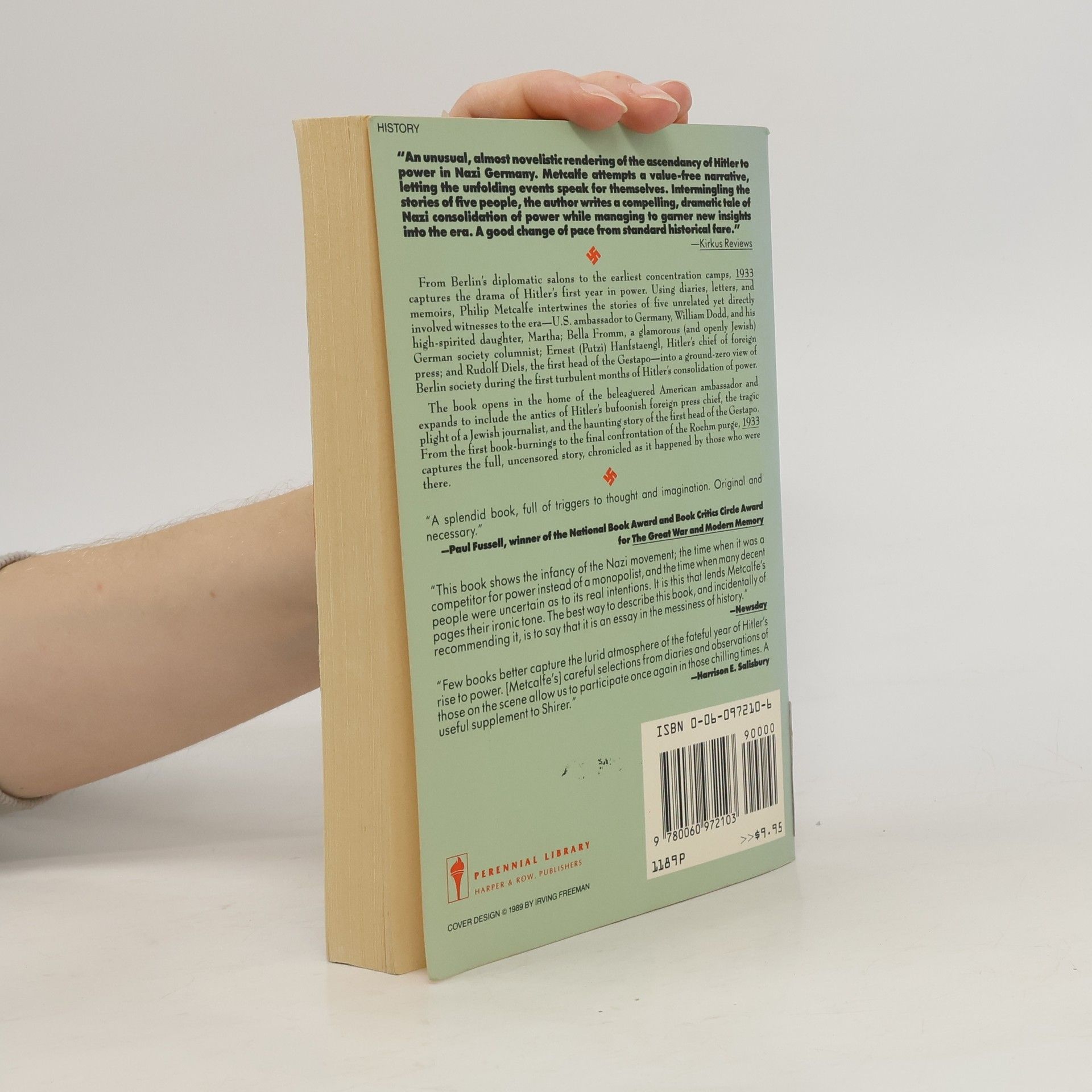 Germany in the first year of Nazi rule is the setting for this evocation of a period of gathering terror. Unlike most of the recent spate of single-year books, this is not an account of public events. Rather it focuses on five people: U.S. Ambassador William Dodd; his daughter Martha; Jewish society reporter Bella Fromm; Putzie Hanfstaengl, chief of the foreign press; and Rudolf Diels, head of the Gestapo. Drawing on their own accounts, on newspaper reports, and on archival sources, Metcalfe conveys a vivid sense of a society going awry and of jarring incongruity between the normality of everyday life and the new stark violence.