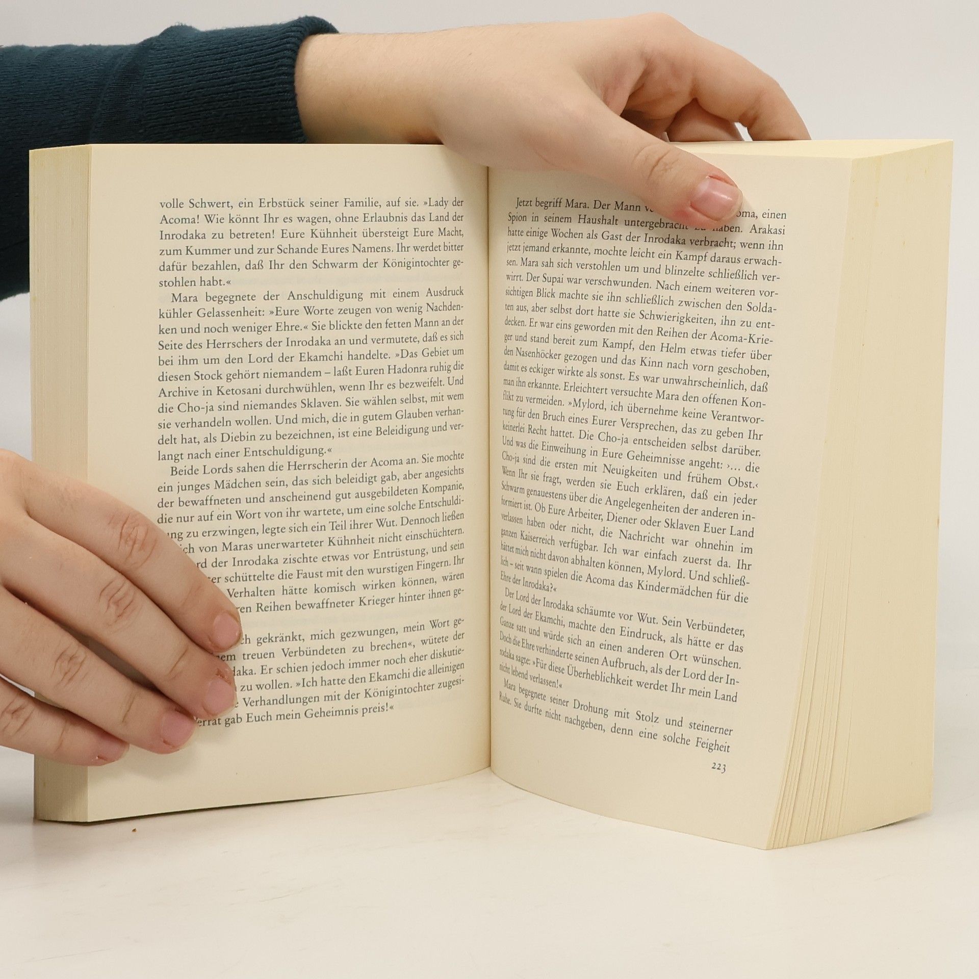 Magic and murder engulf the realm of Kelewan. Fierce warlords ignite a bitter blood feud to enslave the empire of Tsuranuanni. While in the opulent Imperial courts, assassins and spy-master plot cunning and devious intrigues against the rightful heir. Now Mara, a young, untested Ruling lady, is called upon to lead her people in a heroic struggle for survival. But first she must rally an army of rebel warriors, form a pact with the alien cho-ja, and marry the son of a hated enemy. Only then can Mara face her most dangerous foe of all--in his own impregnable stronghold. An epic tale of adventure and intrigue. Daughter of the Empire is fantasy of the highest order by two of the most talented writers in the field today.