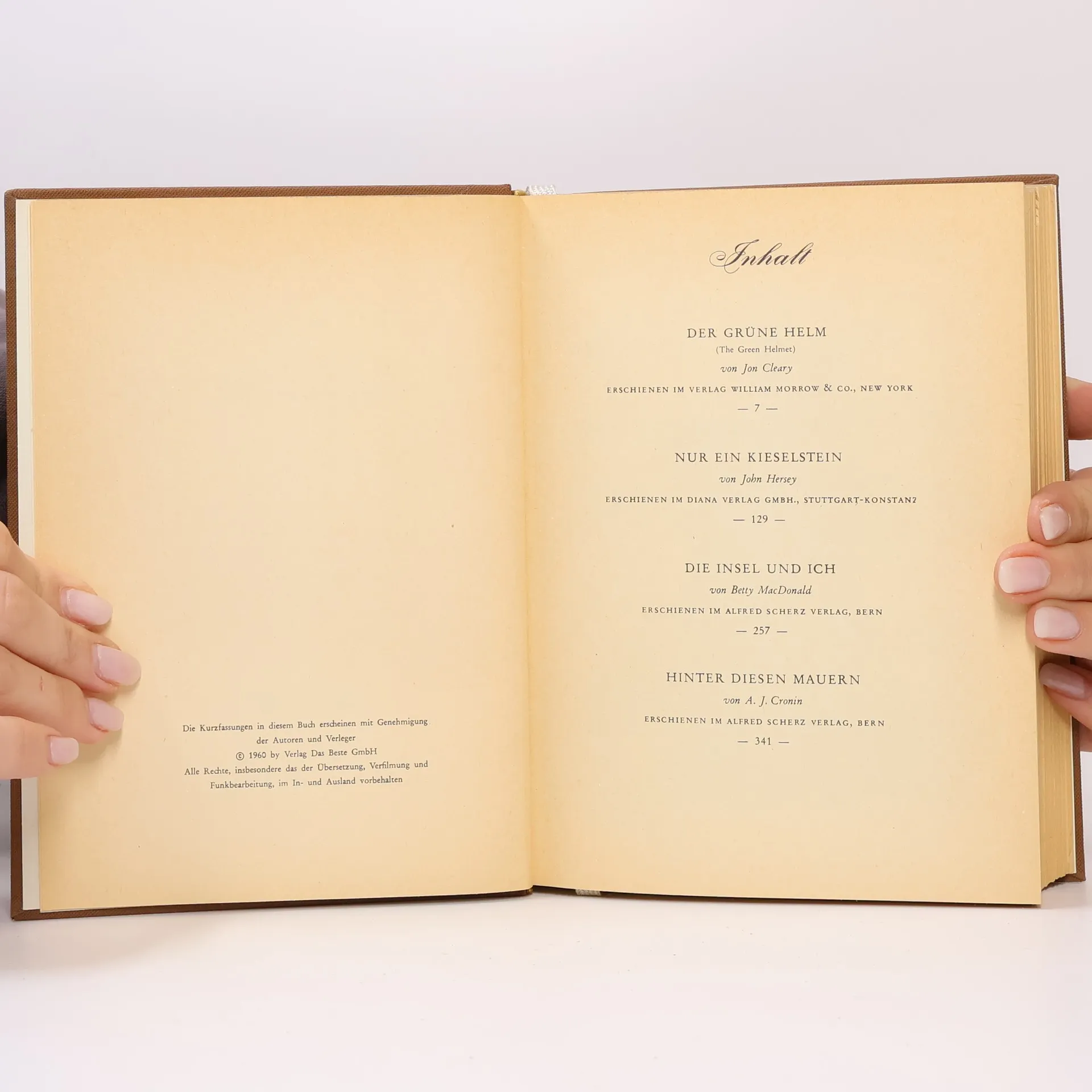 Reader's Digest Auswahlbücher. Der Grüne Helm. Nur ein Kieselstein. Die Insel und ich. Hinter diesen Mauern, Jon Cleary, John Hersey, Betty MacDonald, A. J. Cronin