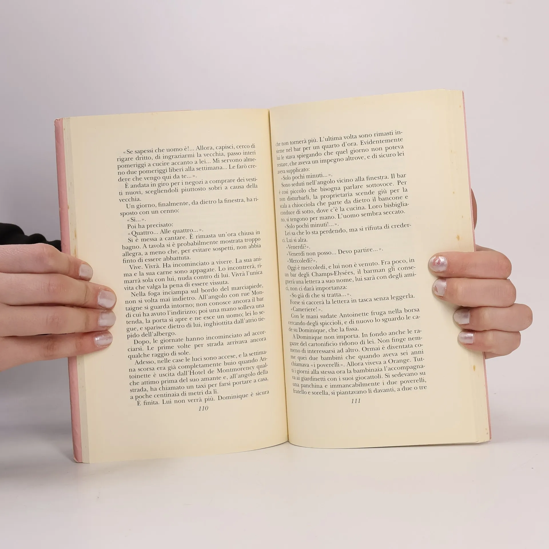 Un lento e soffocante pomeriggio estivo, in un modesto appartamento di Faubourg Saint-Honoré, una donna ricuce un vecchio vestito. Oltre la sottile parete, due corpi giovani si abbandonano all'amore, e lei immagina ogni gesto, percependo il calore e l'intimità di quel momento. Prima di provare il vestito, si osserva nel lungo specchio dell'armadio, toccando i suoi seni, consapevole della bellezza del suo corpo, mai sfiorato da un uomo, che rimane invariato dai sedici anni. Si avvicina alla finestra e spia la ricca famiglia dei Rouet, proprietari del palazzo e di gran parte della zona. Per ore, osserva le loro vite: i genitori al piano di sopra e il giovane Hubert con la sua bella moglie Antoinette al piano di sotto. In questo assolato pomeriggio di luglio, diventa testimone di eventi che potrebbero sfociare in un omicidio. Da quel momento, la donna inizia a vivere per procura la vita di Antoinette, una vita intensa e proibita, che lentamente si intreccia con la sua. Con questa storia di torbida ossessione, l'autore offre un romanzo tra i più sottilmente perversi.